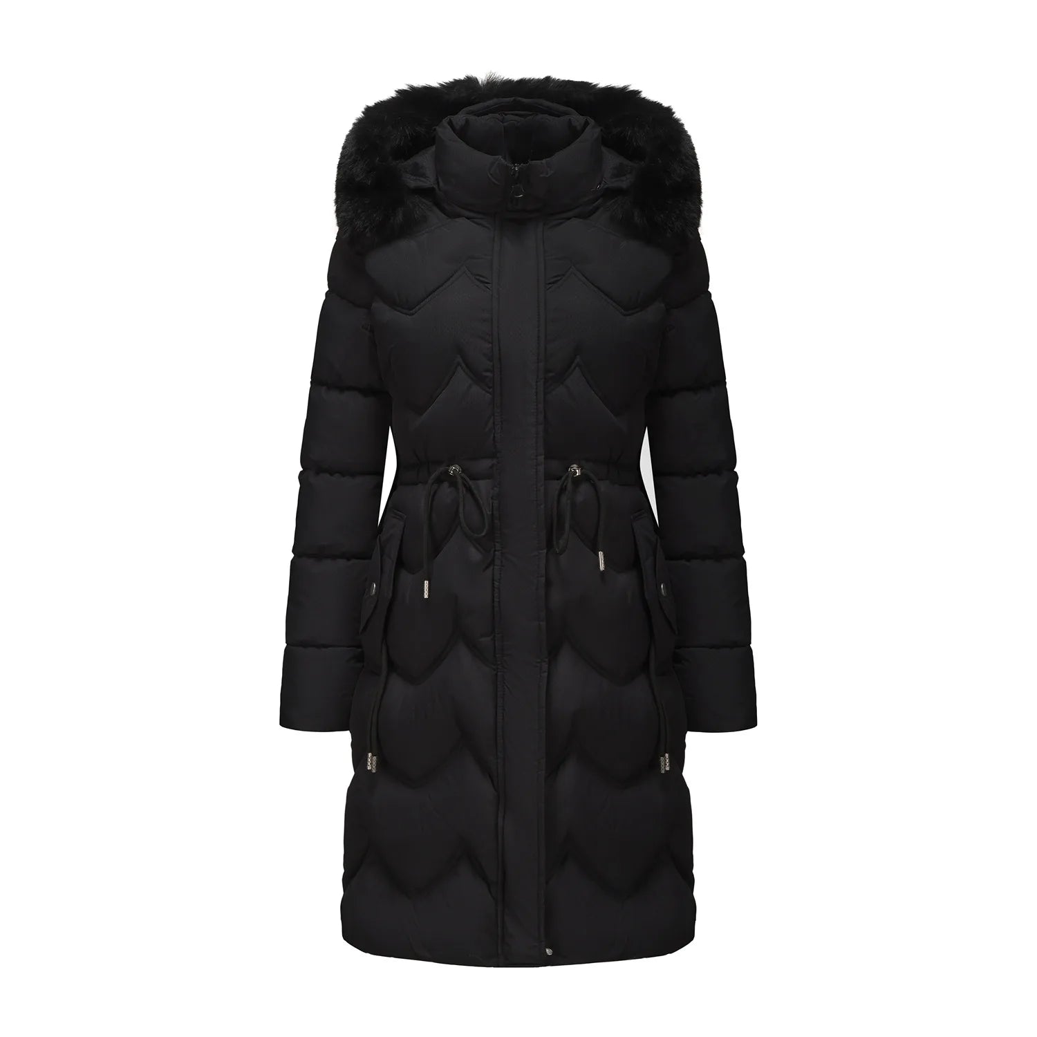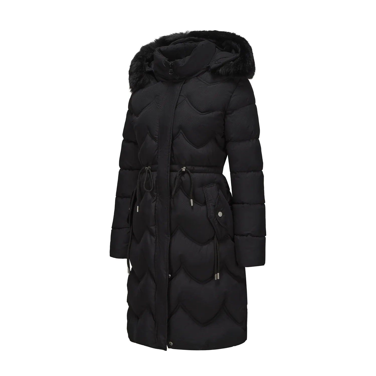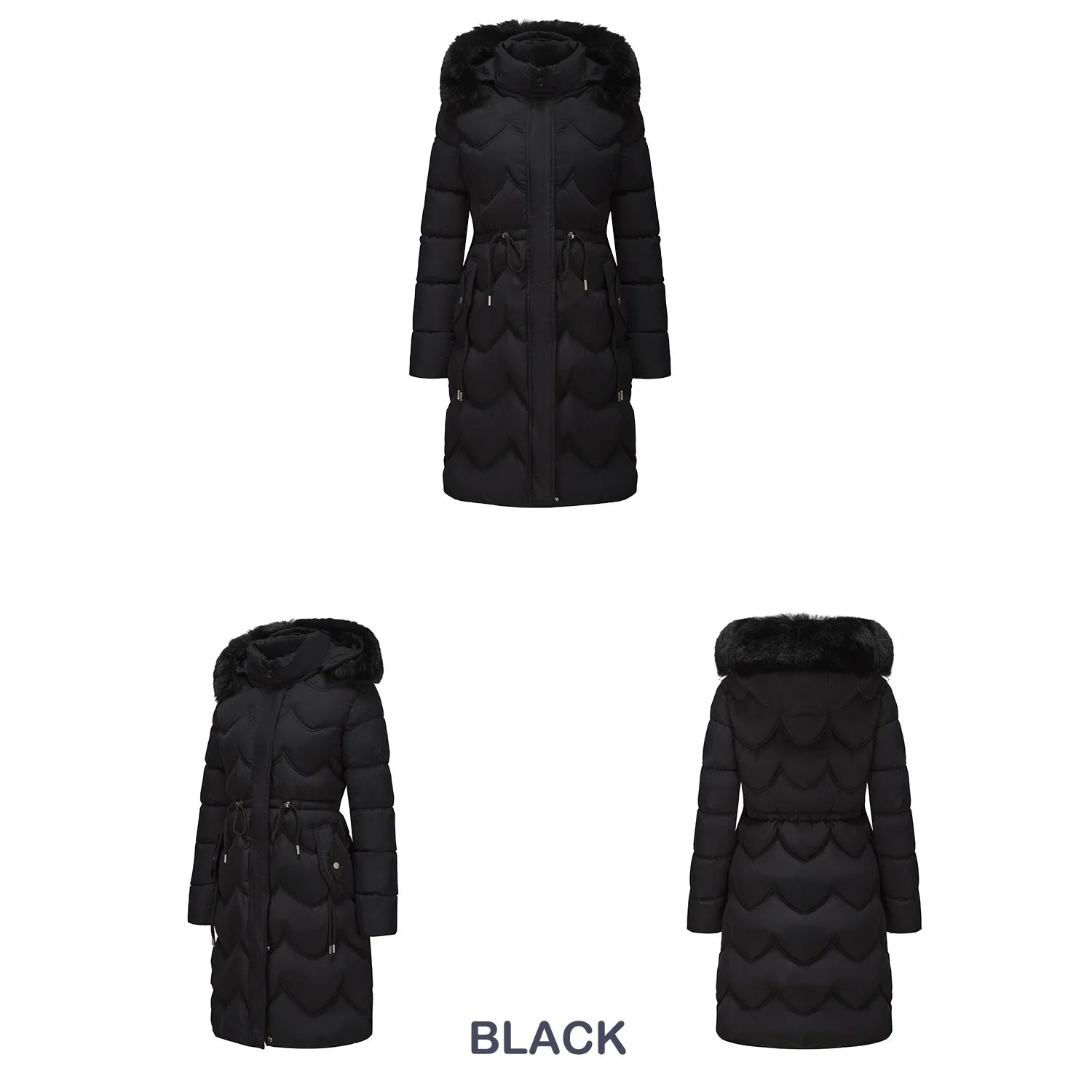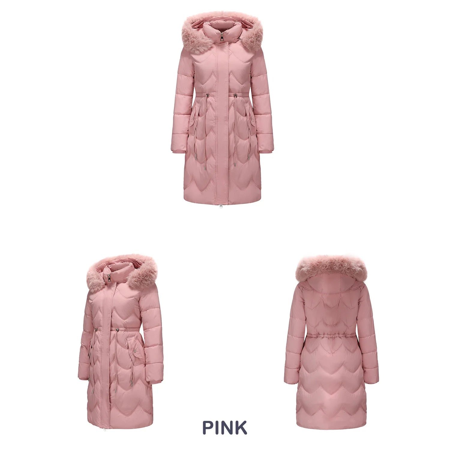 Abrigo largo con capucha estilo viajero rosa para mujer, parkas verde claro, chaqueta térmica negra con abrigo con cordón en la cintura.