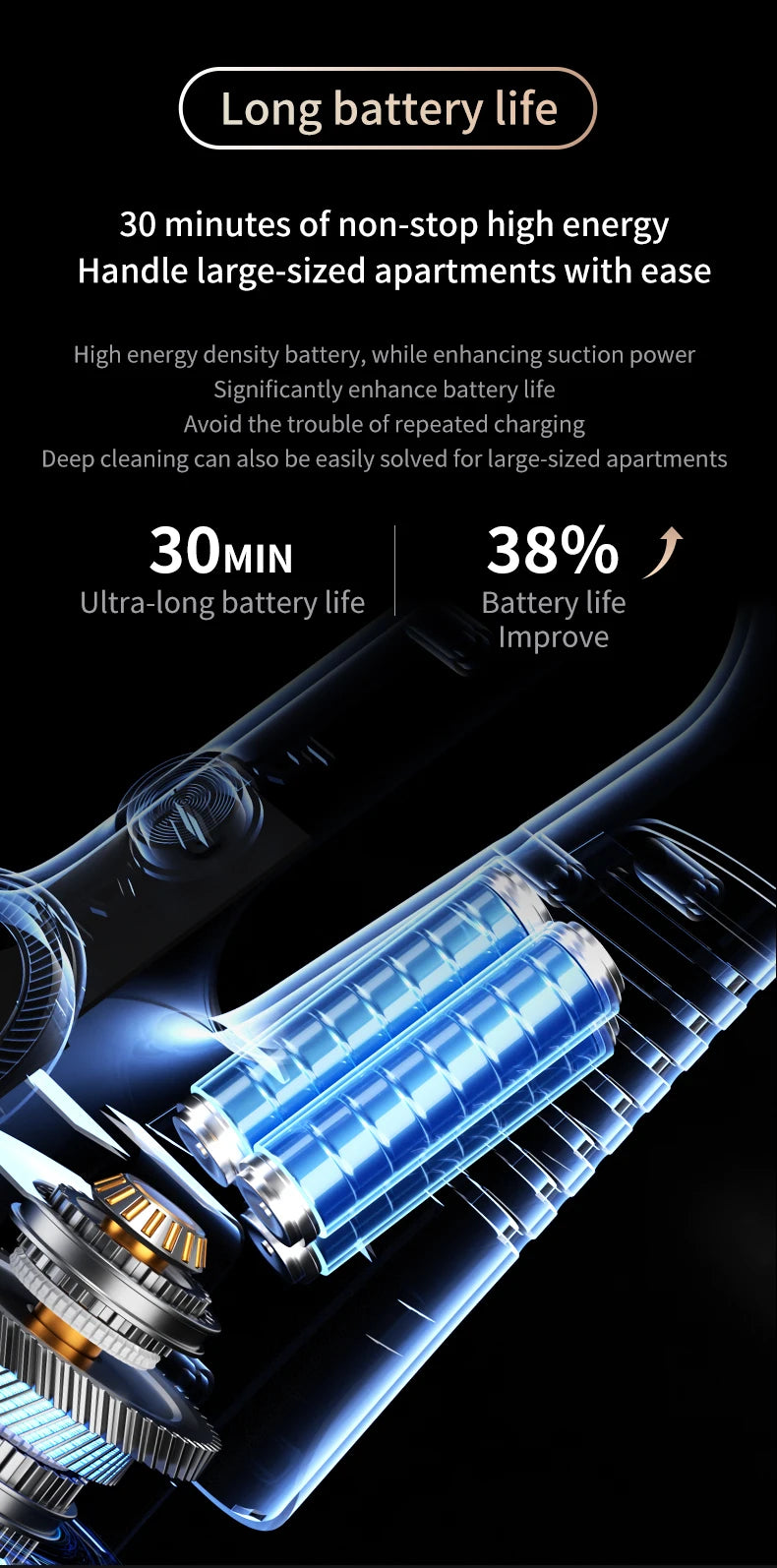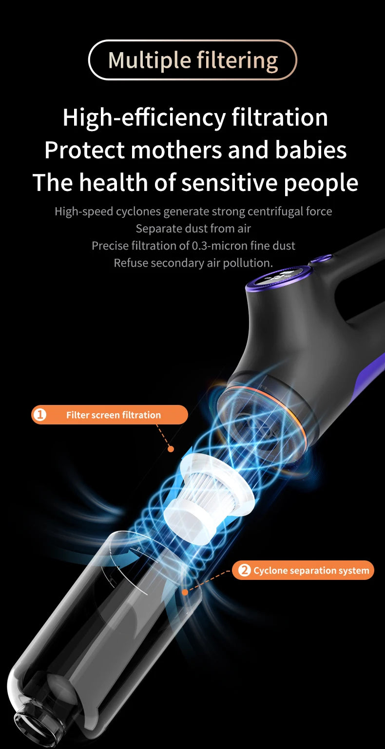 Aspirador inalámbrico: filtro Hepa húmedo y seco, tiempo de ejecución de 30 minutos, 180 ° Aspirador de varilla flexible, aspirador de mano para el hogar