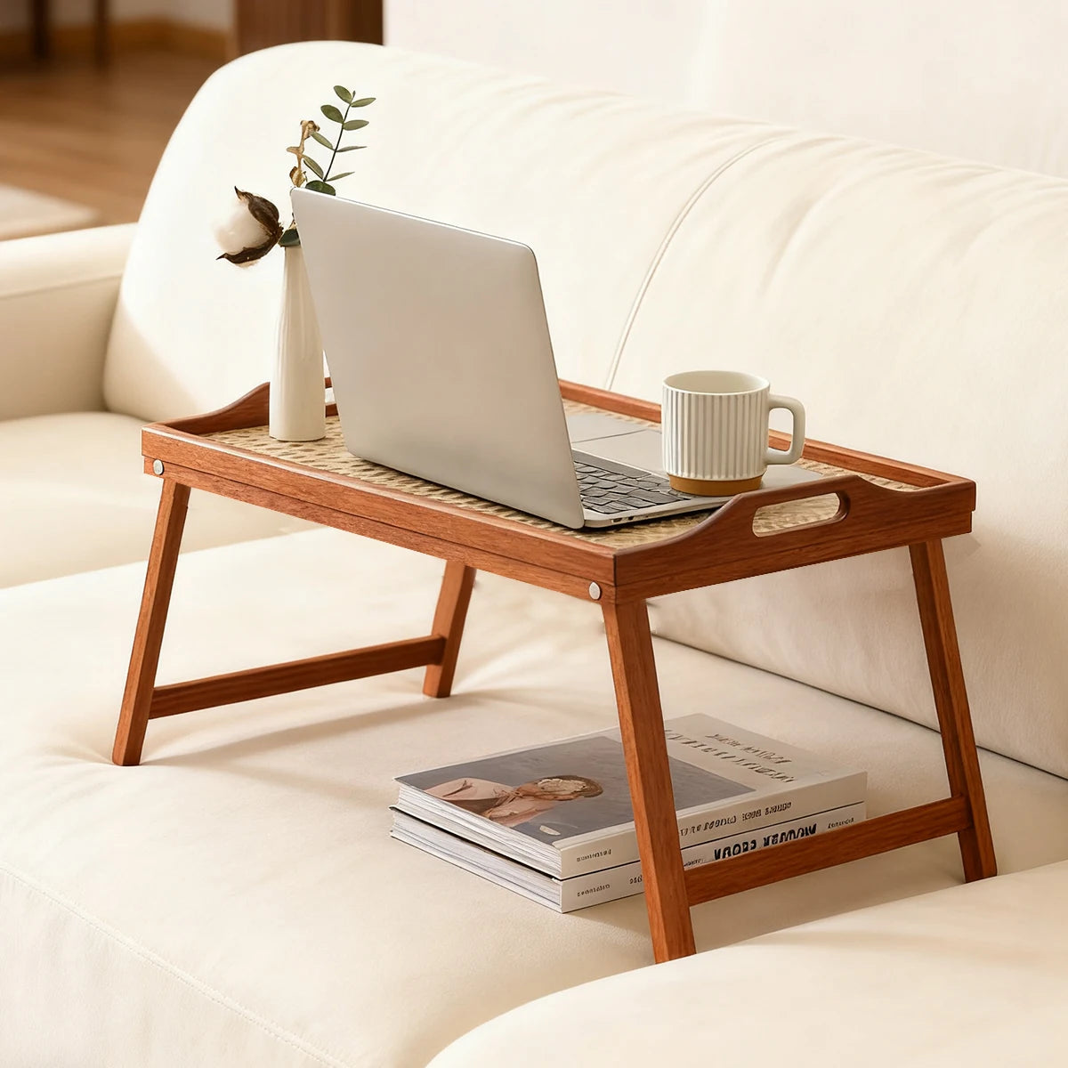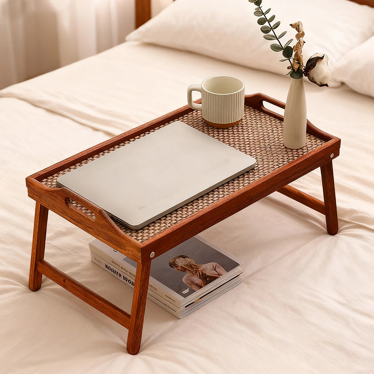 Bandeja de cama plegable de madera ergonómica con soporte para tableta, escritorio multiusos para pacientes de recuperación/sofá cama de oficina 19,7x11,8