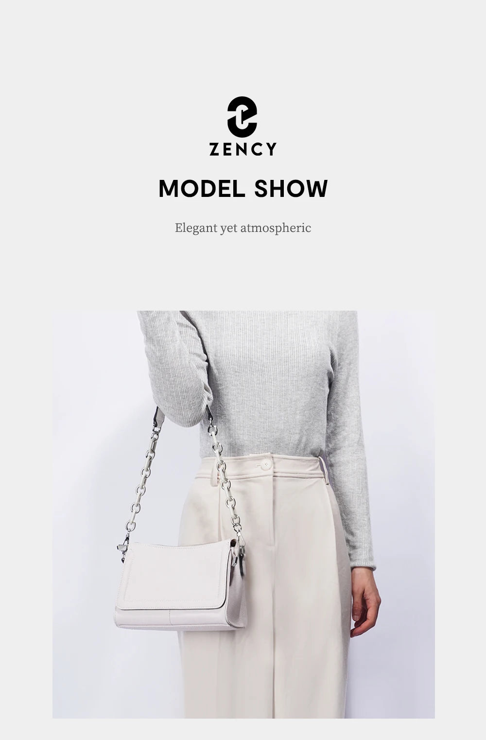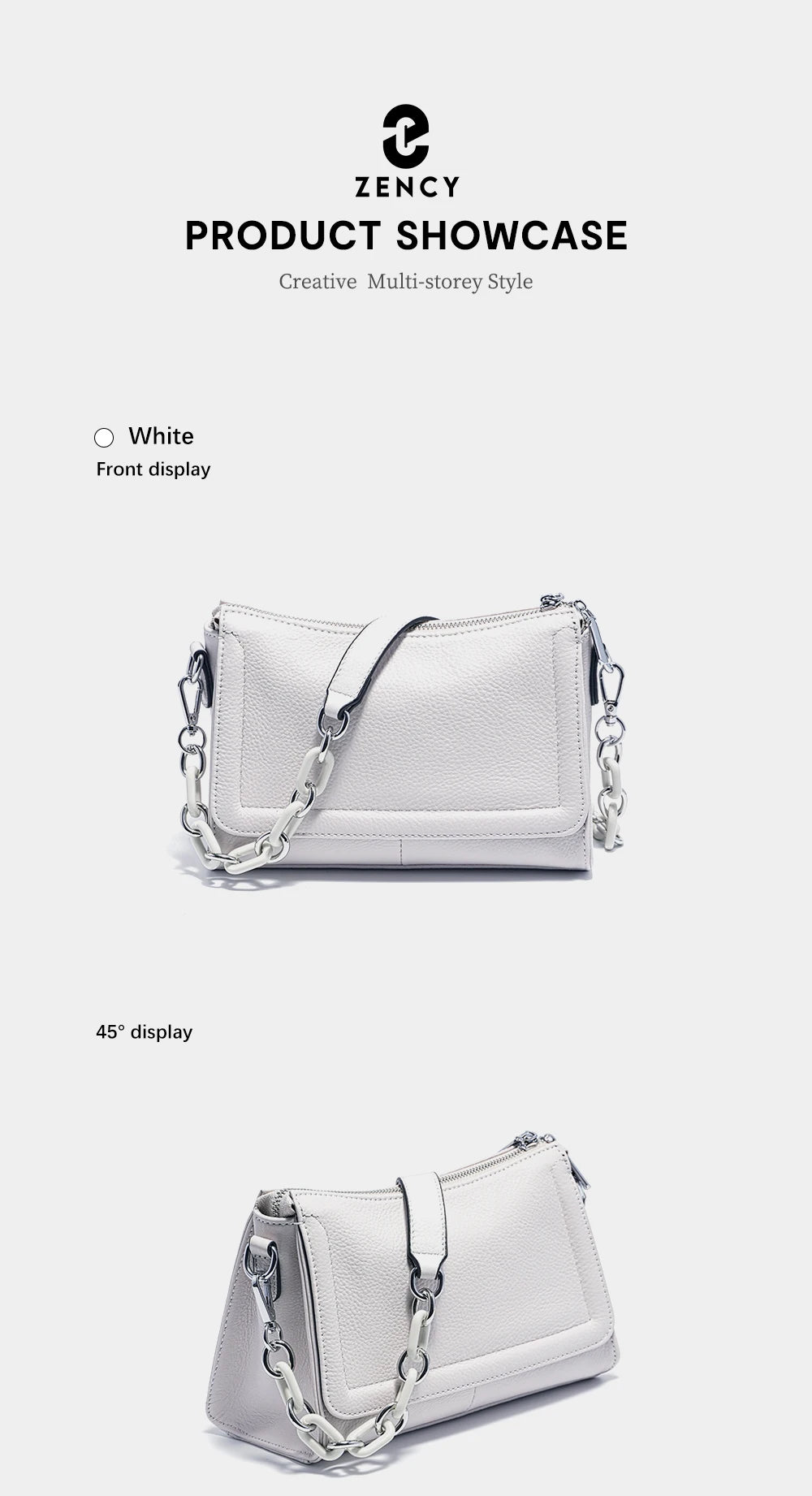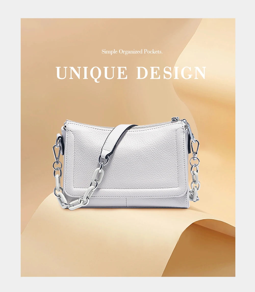 Bolso de mano Zency 2025 con cadena acrílica, bolso cruzado pequeño de lujo con asa superior de cuero suave para mujer, bolso de hombro blanco a la moda
