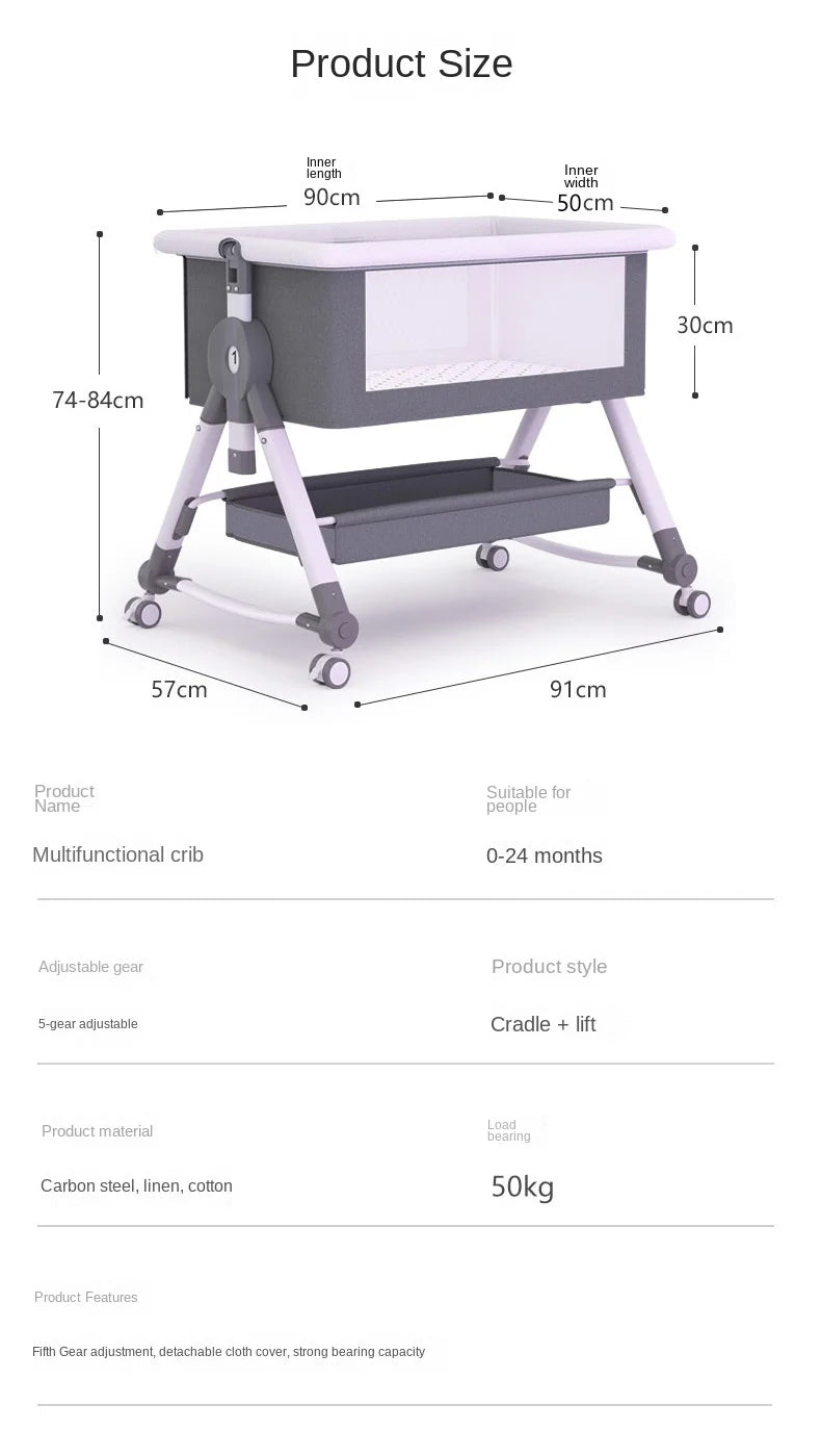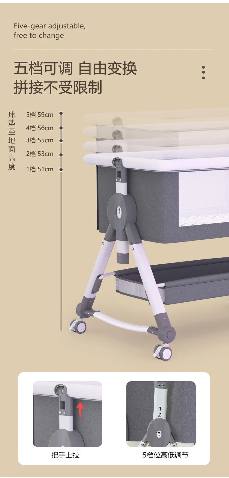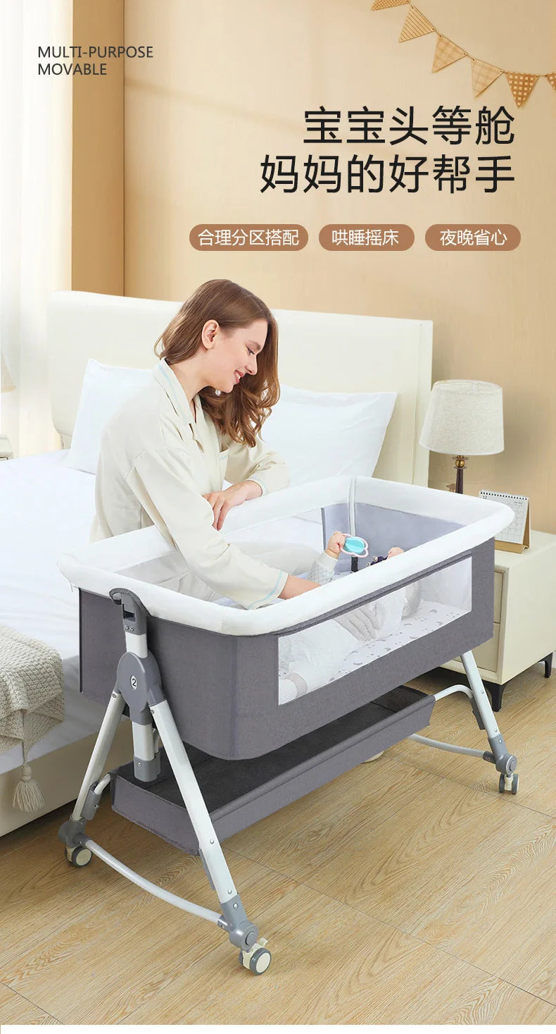 Cama de empalme grande para recién nacido, mecedora de bebé bb, cuna para niños, multifuncional, móvil y plegable