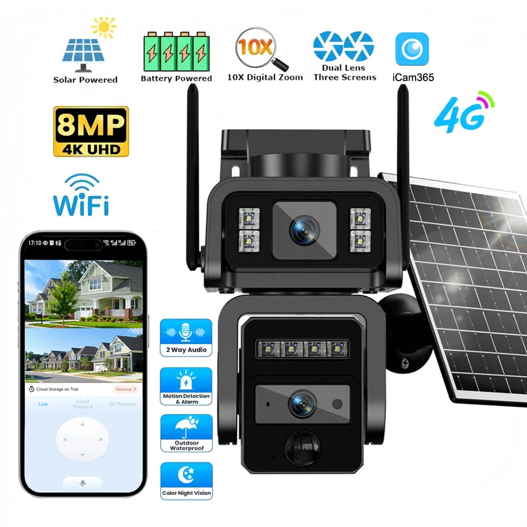 Cámara Solar Inalámbrica al Aire Libre WIFI 4MP: Batería Integrada, Cámara de Seguridad de Video CCTV con Larga Duración en Modo de Espera y Vigilancia de Energía Solar
