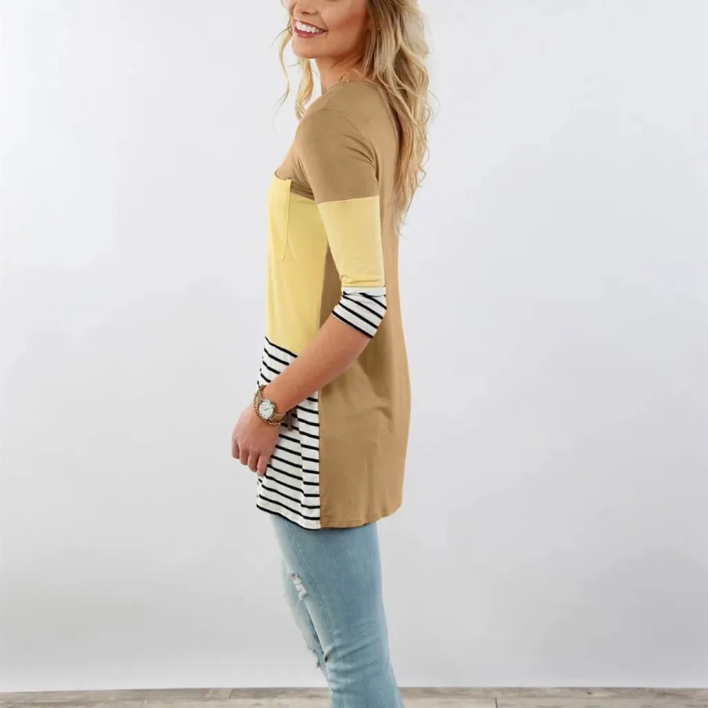 Camisetas de lactancia de Color cosido para mujeres embarazadas a la moda, camisetas informales holgadas de manga larga para maternidad