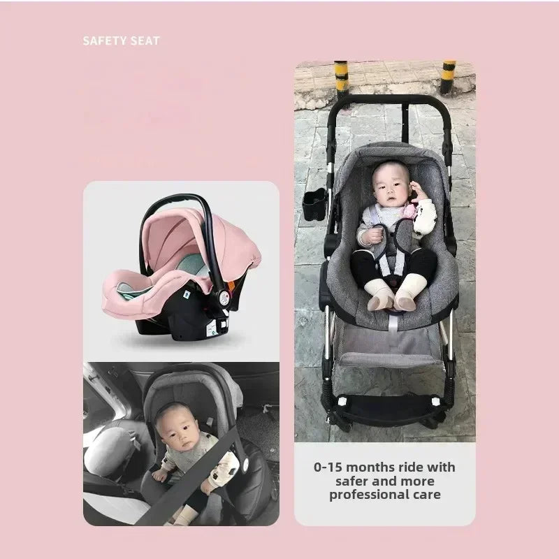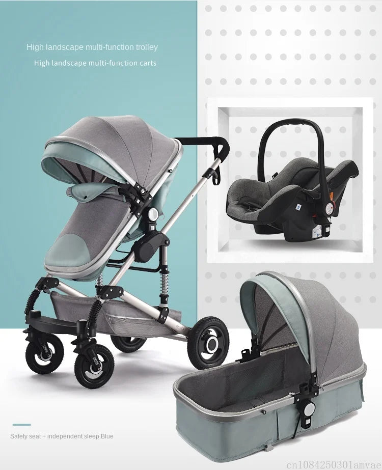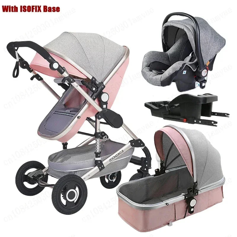 Cochecito de bebé multifuncional para recién nacido, cochecito de paisaje alto, cochecito de bebé 4 en 1 de doble cara con base de asiento de coche ISOFIX 739