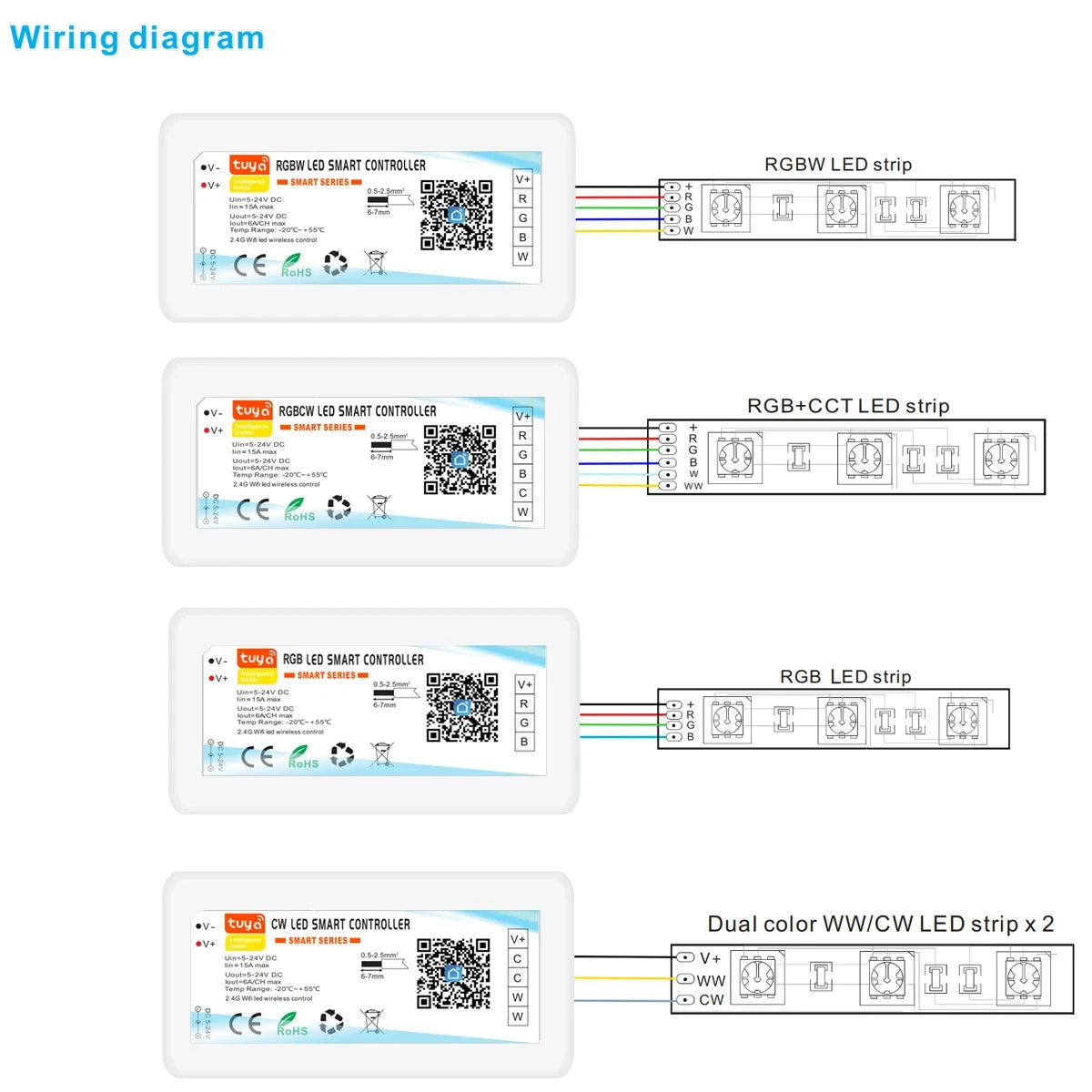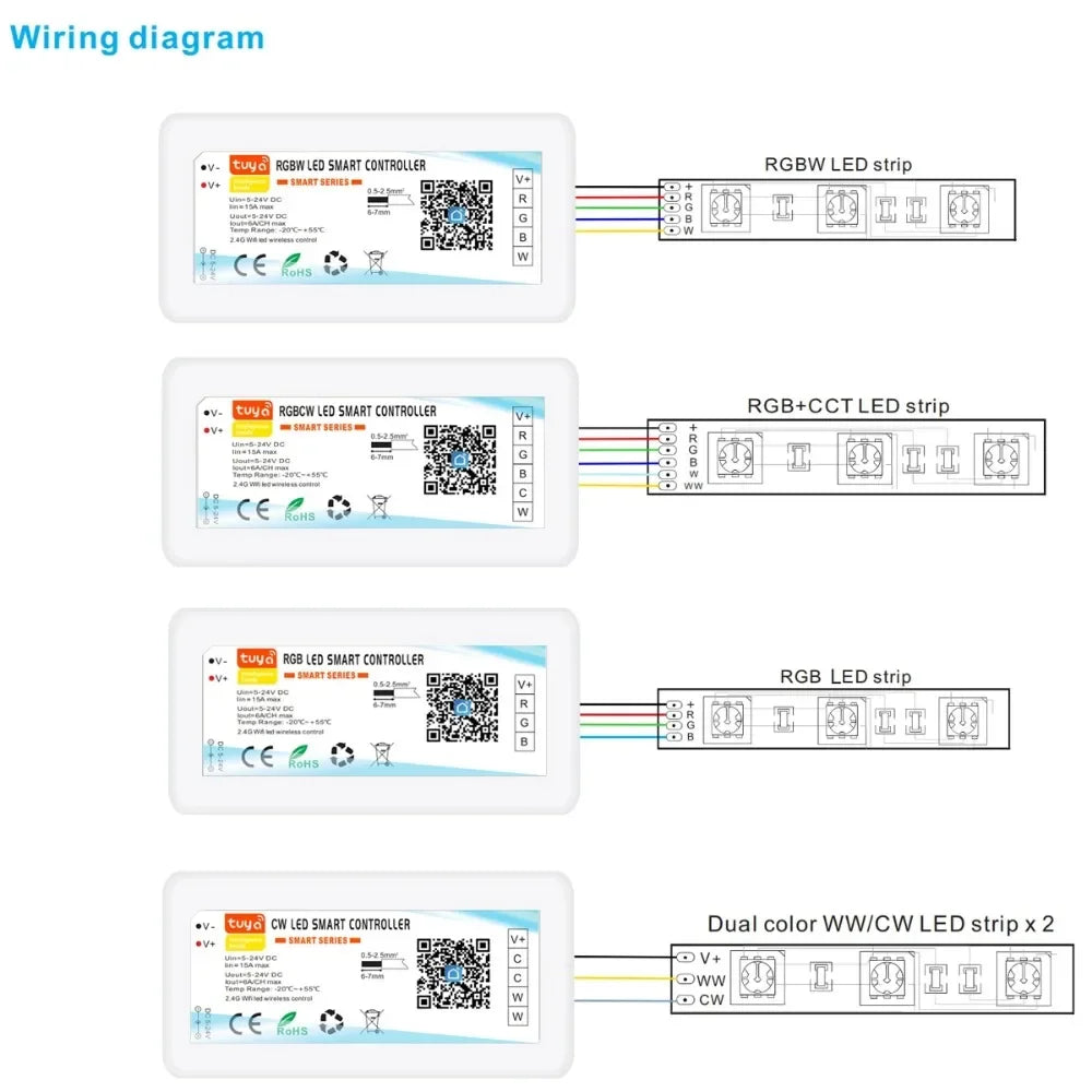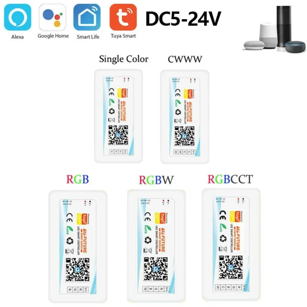 Controlador LED Tuya WiFi 12-24V – Compatible con Alexa y Google Assistant
