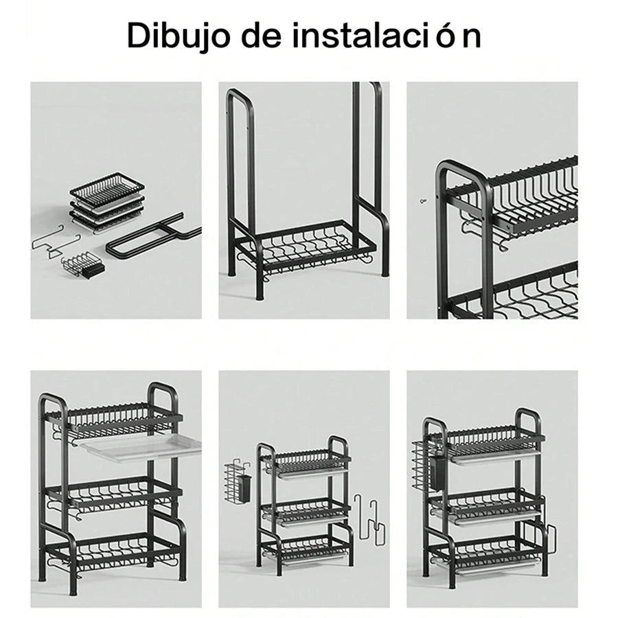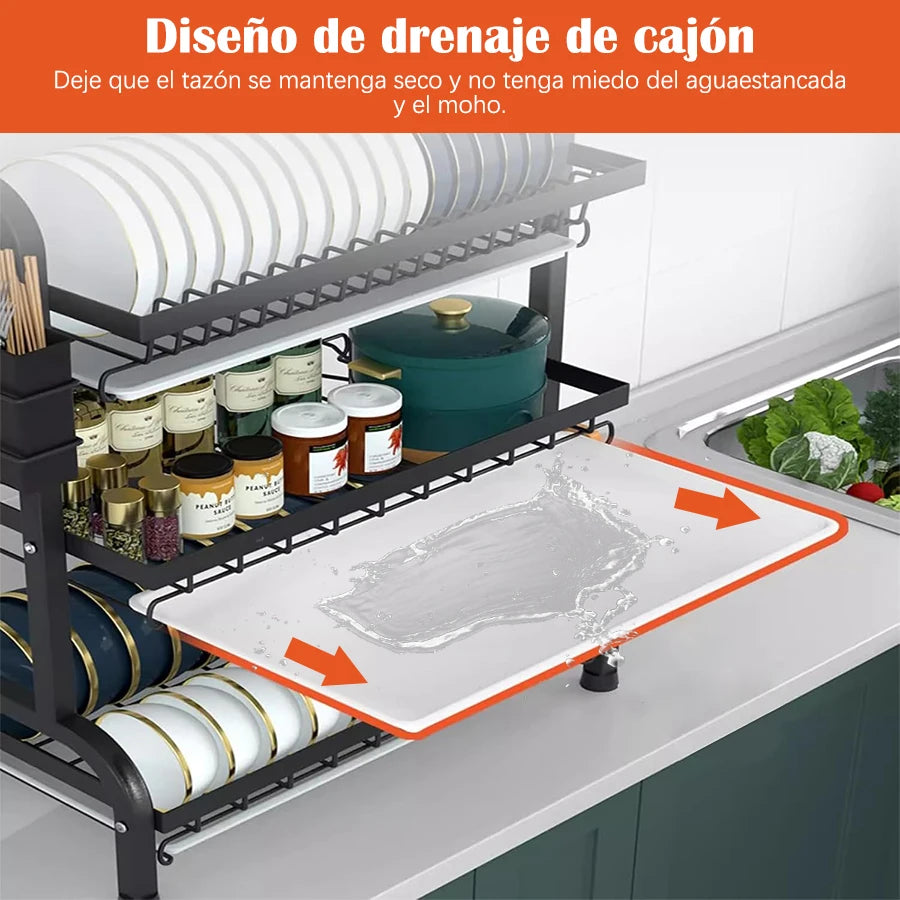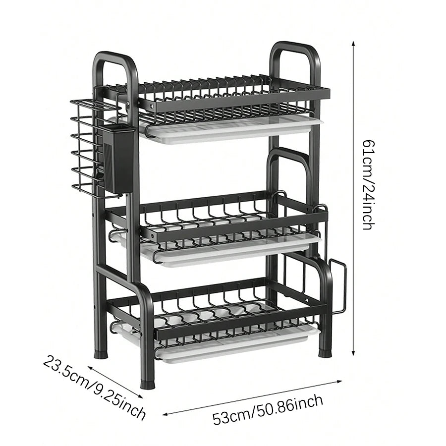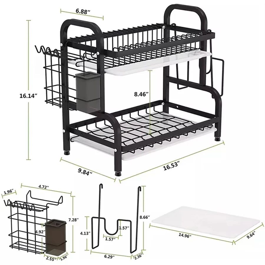 Dish Drainer with 3/2 Tiers, with Counter Drainer, Multifunctional Kitchen Drainer with Tools, with Holder for Knives, Cutlery and Cutting Boards, Christmas