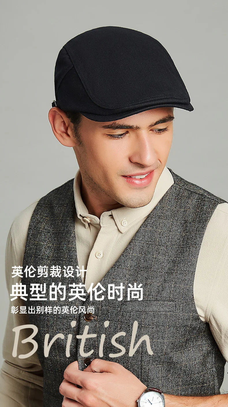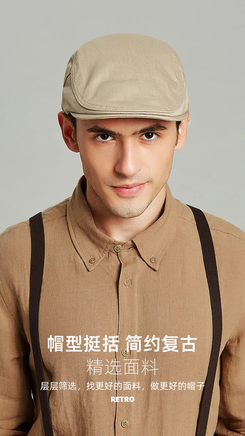 Gorra de hiedra británica para hombre, boina de ocio de primavera y verano con cabeza grande a la moda, sombrero de vendedor de periódicos de algodón sólido para hombre de 55-60cm