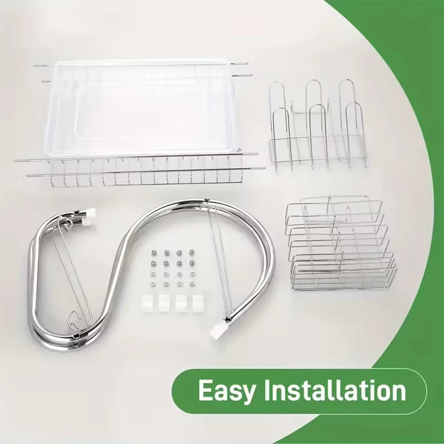 Heavy Duty 2-Layer S-Shaped Stainless Steel Dish Dryer, with Cup-Shaped Drain, Space-Saving Curved Design and Top and Bottom Countertop, Dishwasher Safe, Anti-Rust, Easy to Clean (40X25X36Cm)