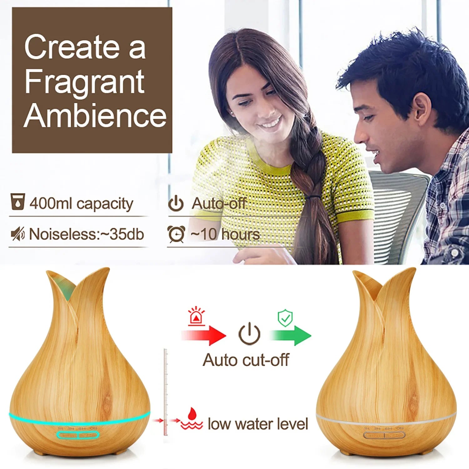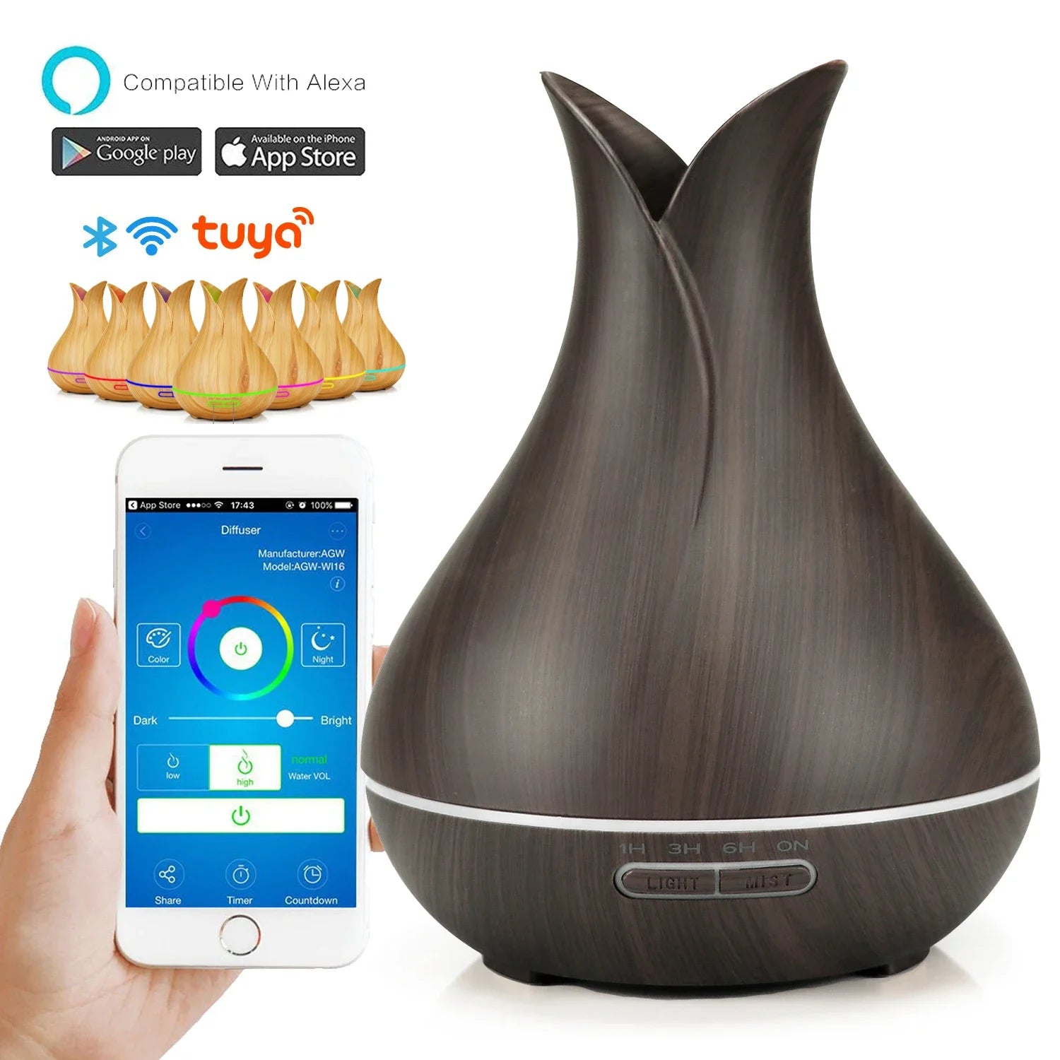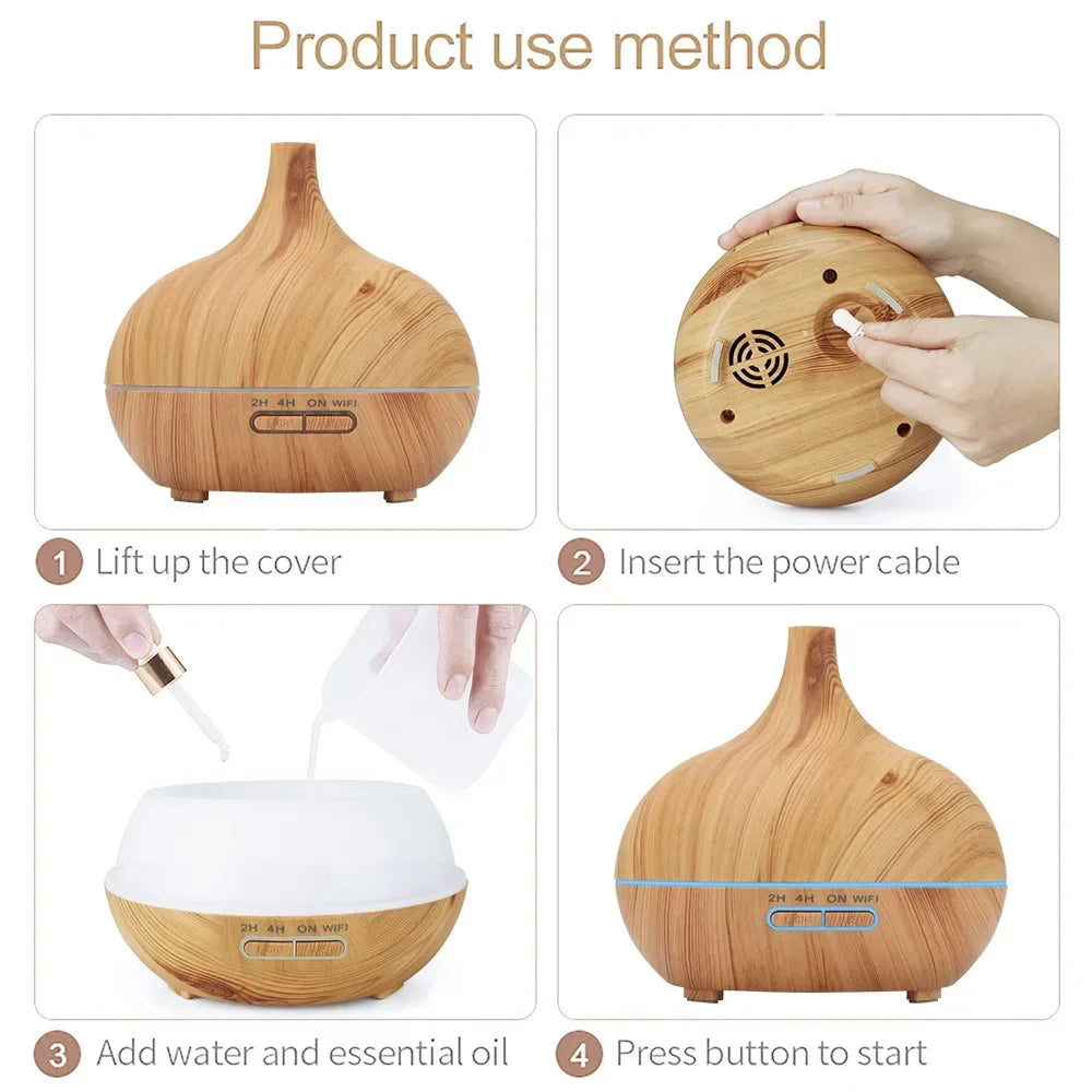 Humidificador de aire inteligente WiFi, difusor de aceites esenciales de 400ml, humidificadores de aire ultrasónicos para aromaterapia, pulverizador de niebla fría, Humidificador