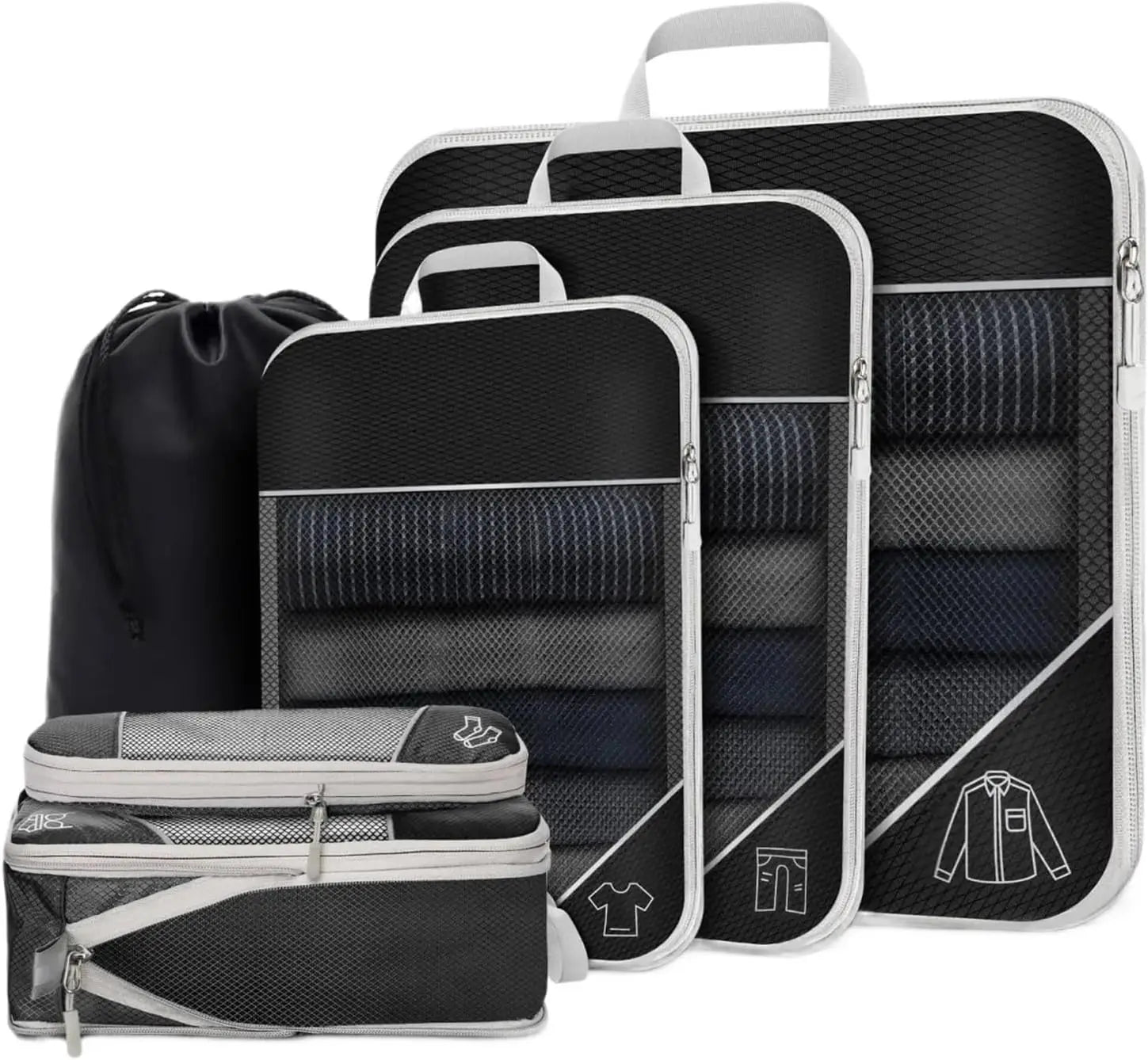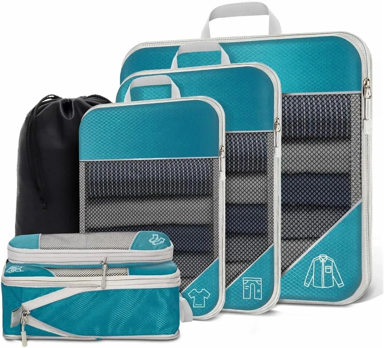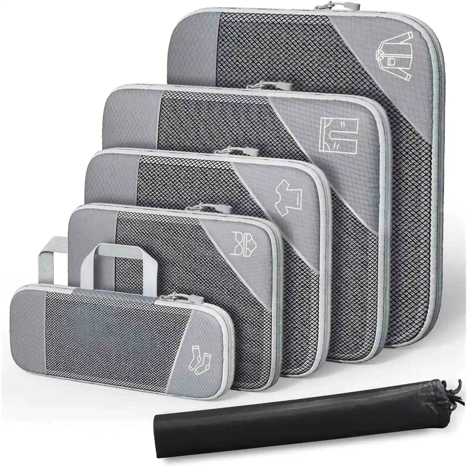 Juego de organizador de almacenamiento de cubos de embalaje comprimidos de viaje, 6 uds., con bolsa para zapatos, equipaje Visual de malla, bolsa de maleta ligera portátil