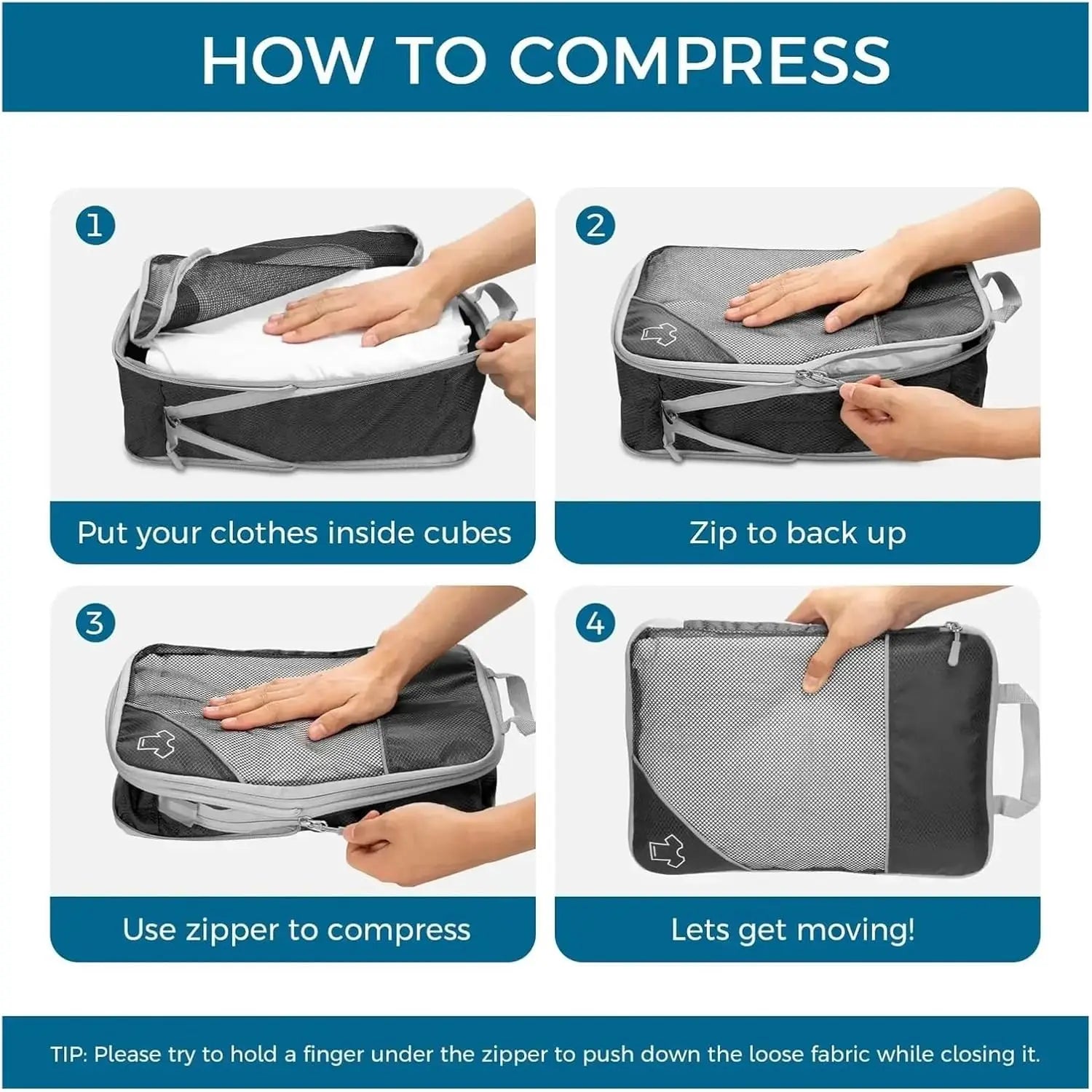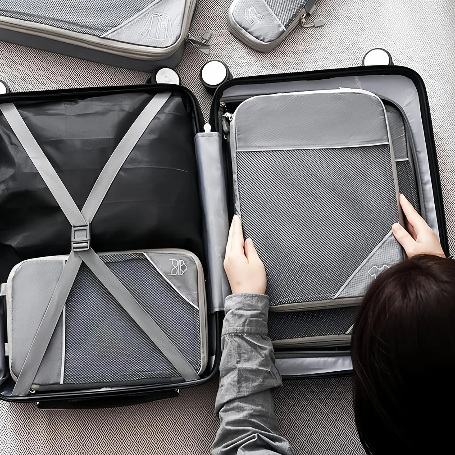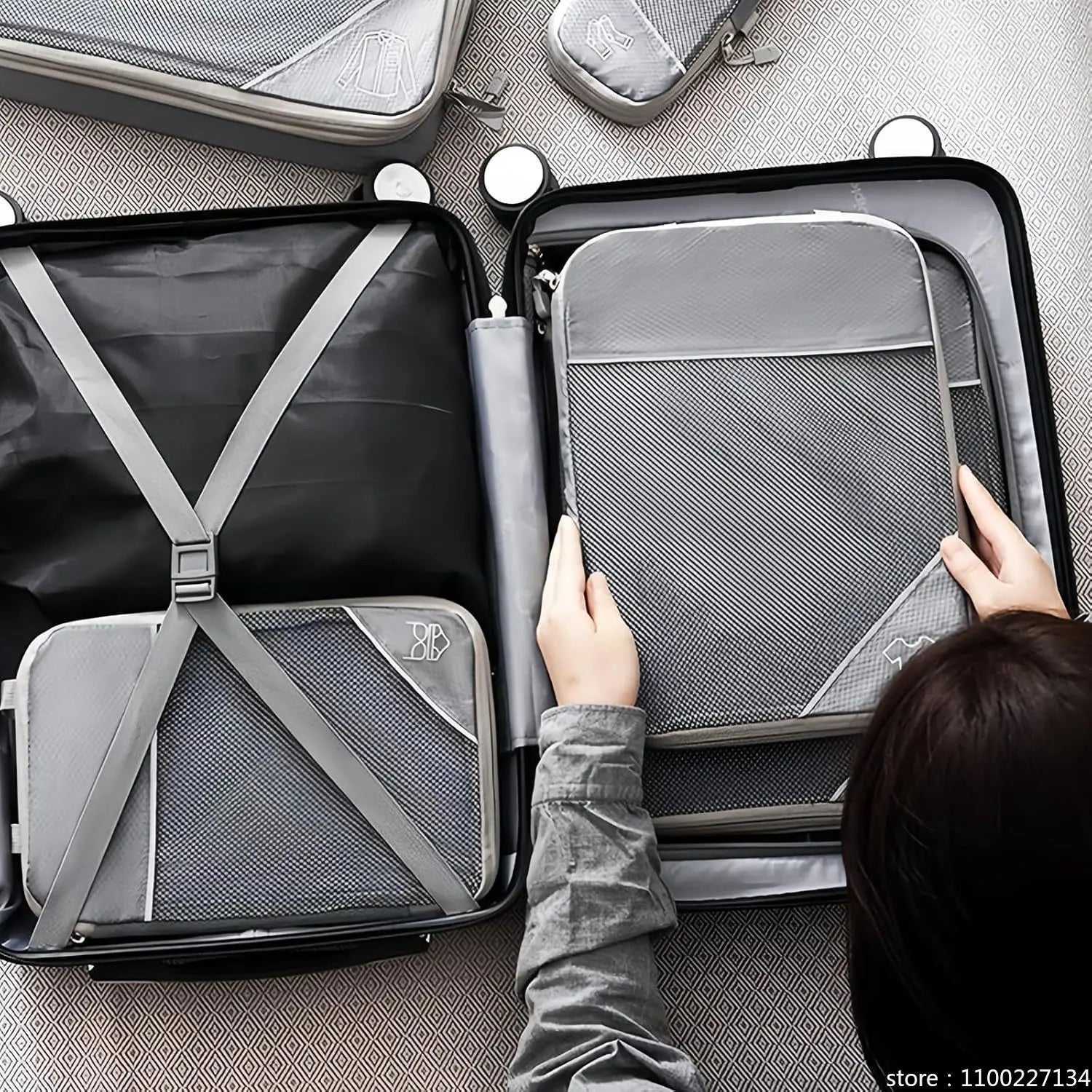 Juego de organizador de almacenamiento de cubos de embalaje comprimidos de viaje, 6 uds., con bolsa para zapatos, equipaje Visual de malla, bolsa de maleta ligera portátil