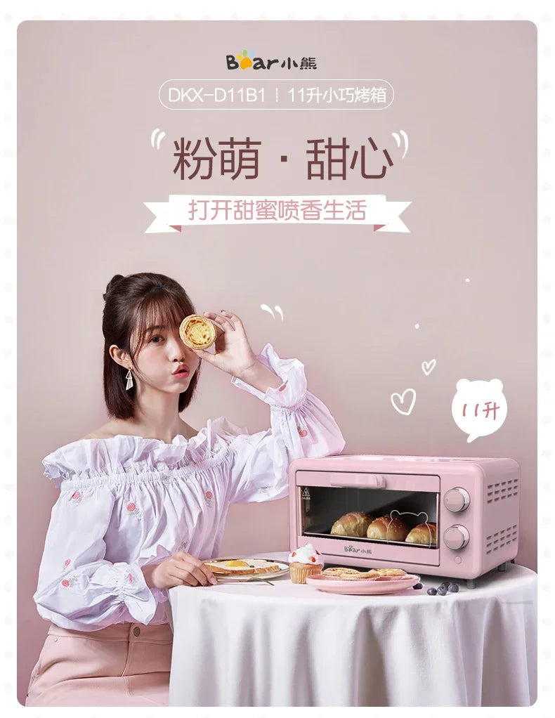 Mini Horno Eléctrico Little Bear DKX-D11B – 11L, Tostadora para Hogar, Color Rosa | Electrodoméstico de Cocina Compacto