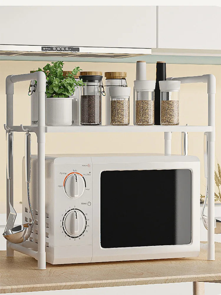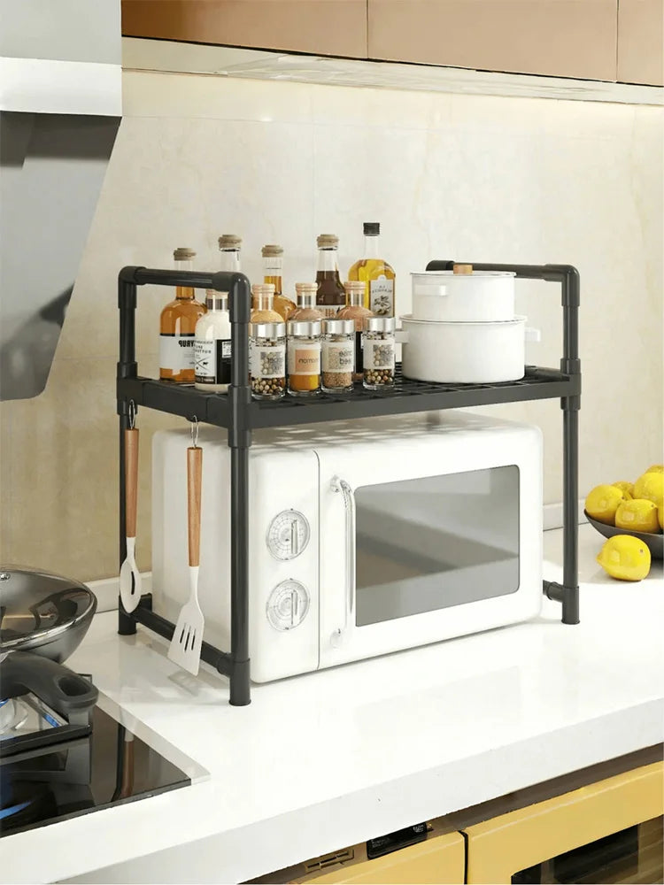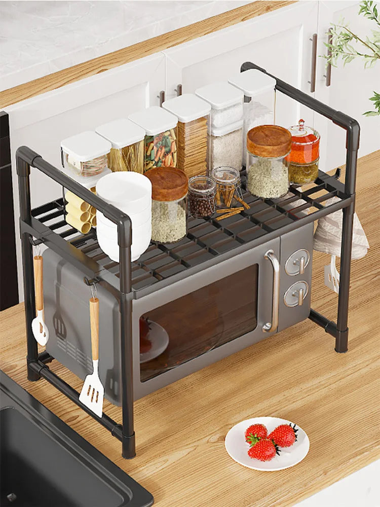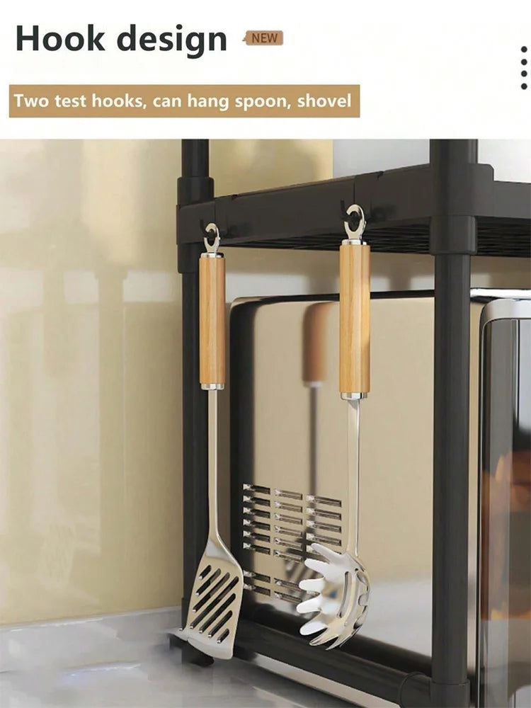 Microwave Shelf Shelf Organizer Above Micronhonda with Multipurpose Rack Hooks with 2/3 Levels 48cm Width: Ideal for Kitchen, Bathroom, Office and Storage in Resistant Stainless Steel Tube