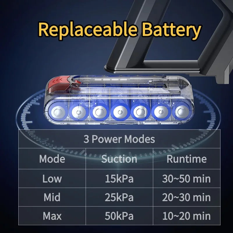 MPQU-aspiradora de mano inalámbrica V18, 550W, succión de 55kPa, batería extraíble, 3 modos de alimentación, escoba eléctrica
