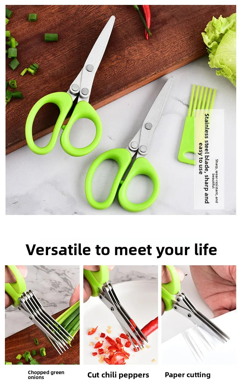 New kitchen cutting stainless steel multi-layer scallion scissors with three to five layers of creative home vegetable scissors