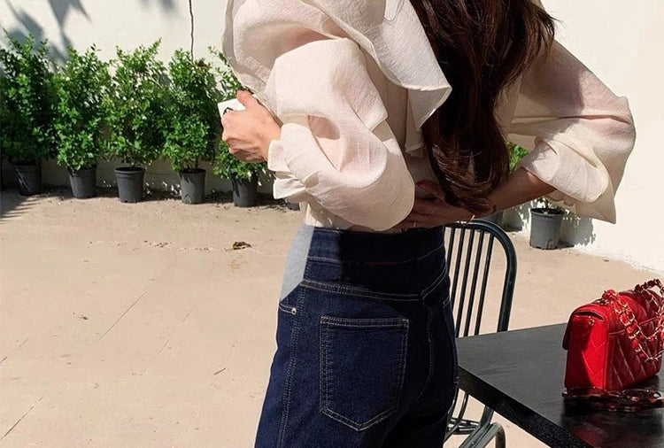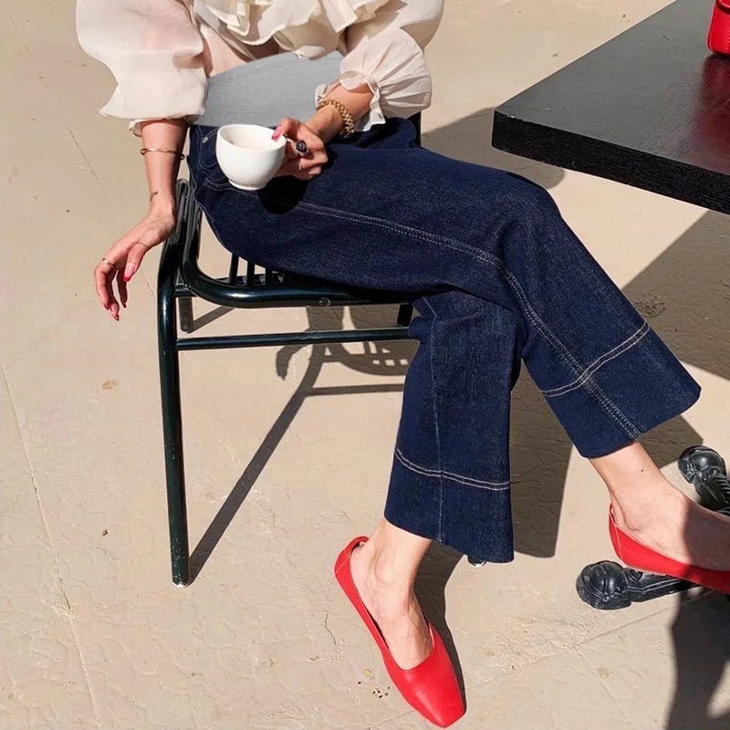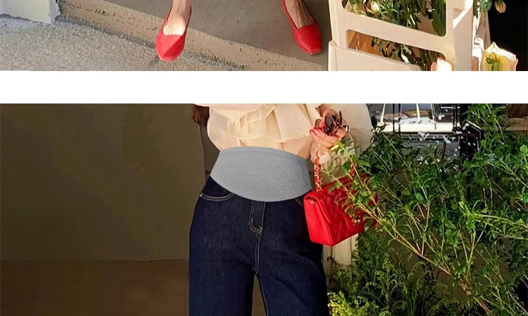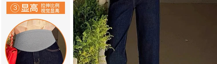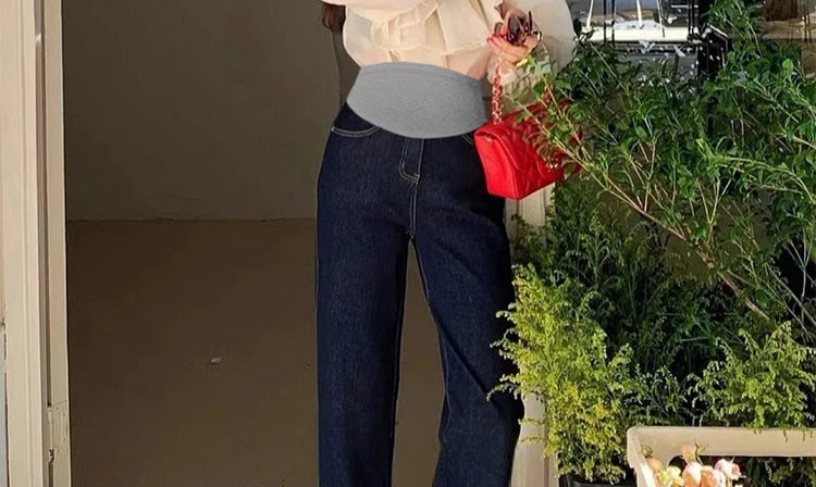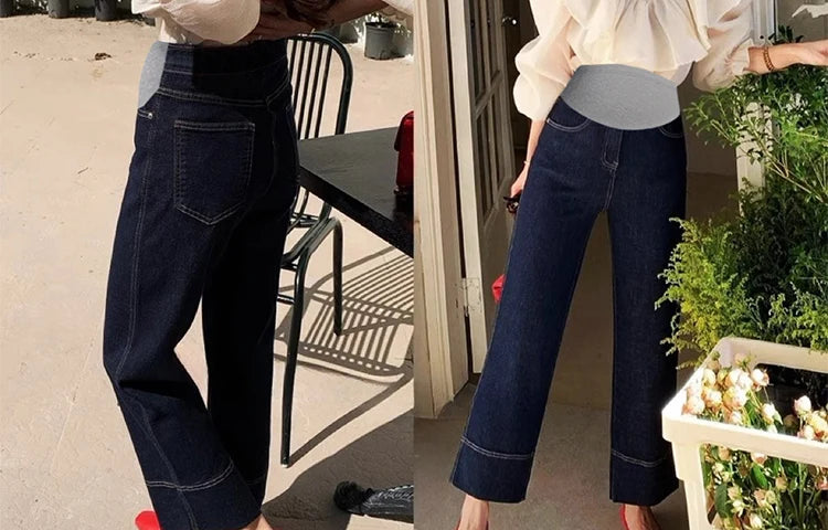 Nuevo artículo novedoso de moda coreana, pantalones vaqueros recortados elásticos de maternidad de mezclilla azul profundo, pantalones de verano y otoño para mujeres embarazadas