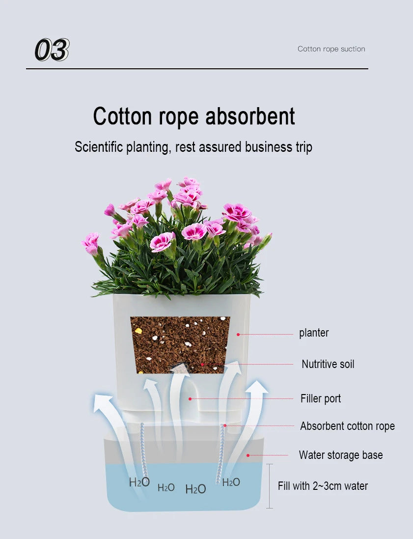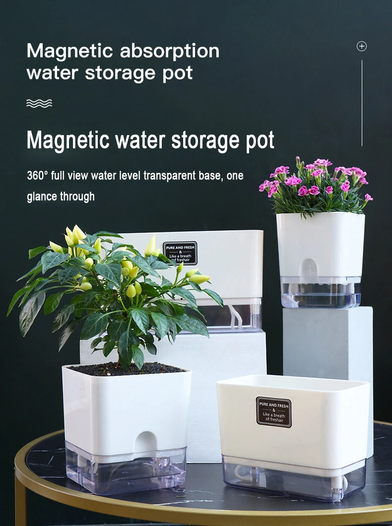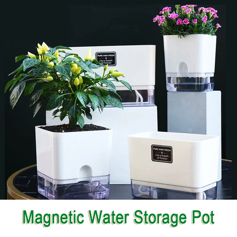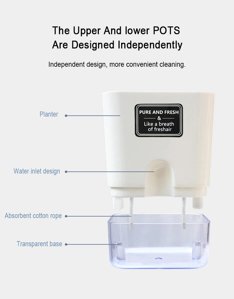 Nuevo Maceta de planta de autorriego, maceta de cuerda de algodón autoabsorbente de plástico magnético para maceta perezosa de dos pisos, suministros de jardín