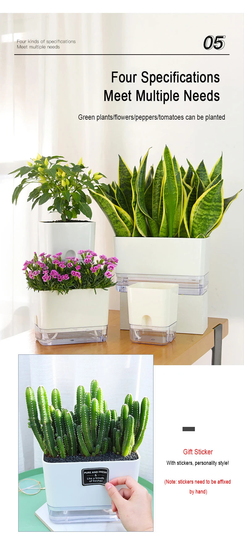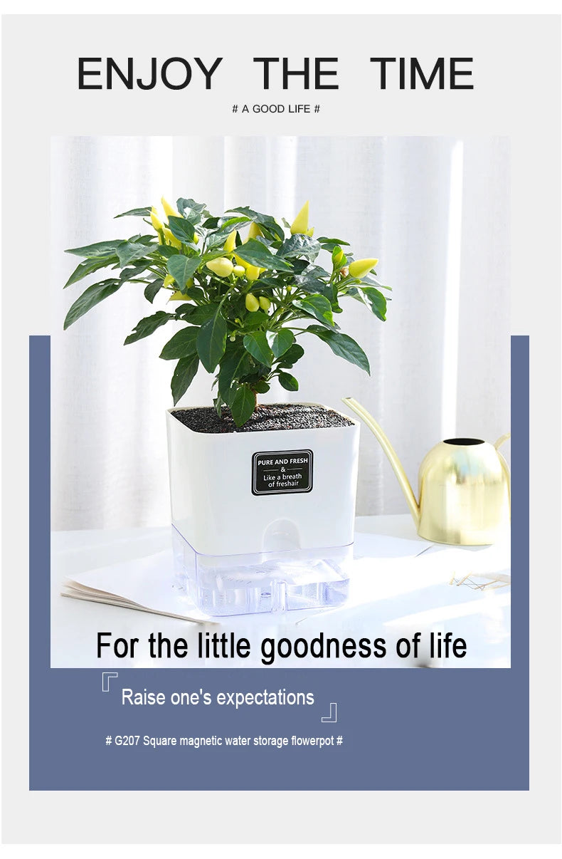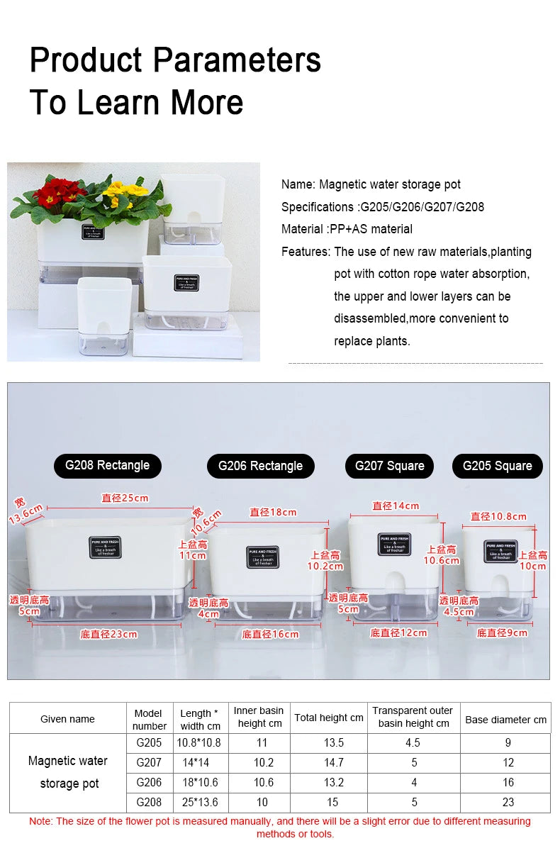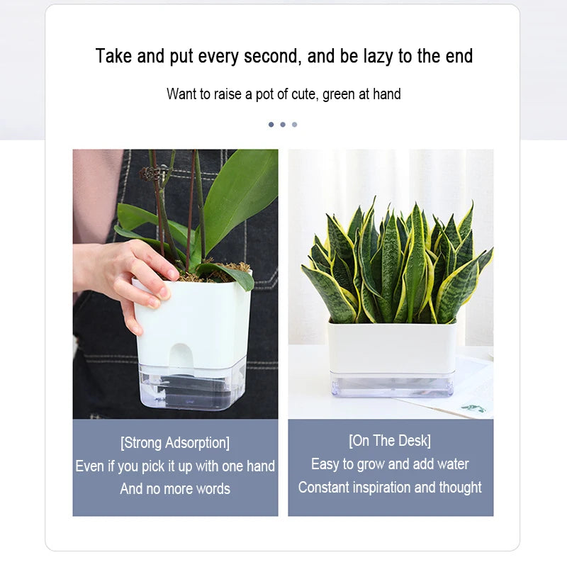 Nuevo Maceta de planta de autorriego, maceta de cuerda de algodón autoabsorbente de plástico magnético para maceta perezosa de dos pisos, suministros de jardín