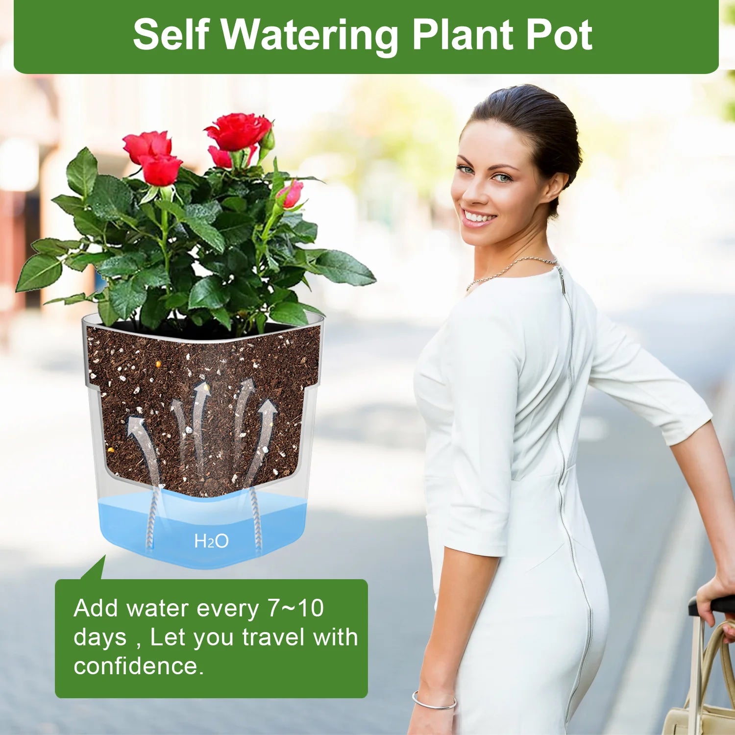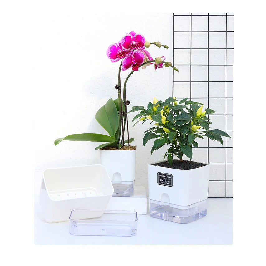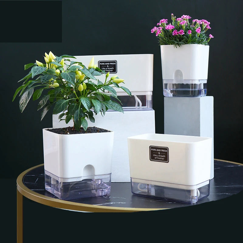Mantén tus plantas siempre hidratadas sin esfuerzo con esta maceta de autorriego de dos pisos, diseñada con un sistema de cuerda... Read more