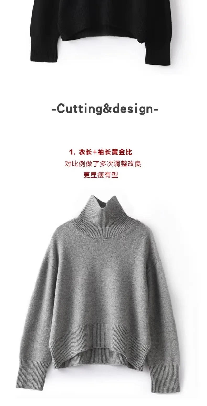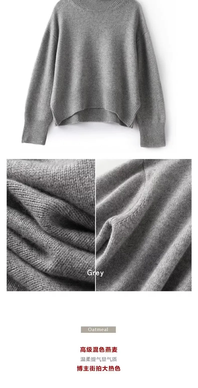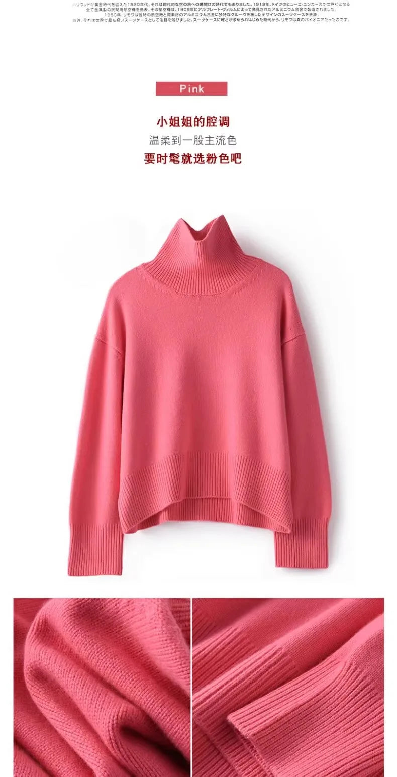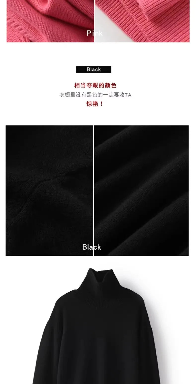 Otoño e Invierno nuevo 100% suéter de cachemira pura suéter de cuello alto grueso para mujer suéter de punto suelto