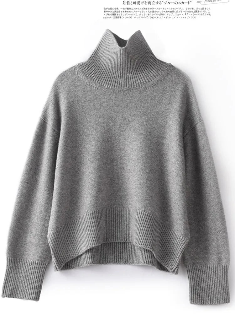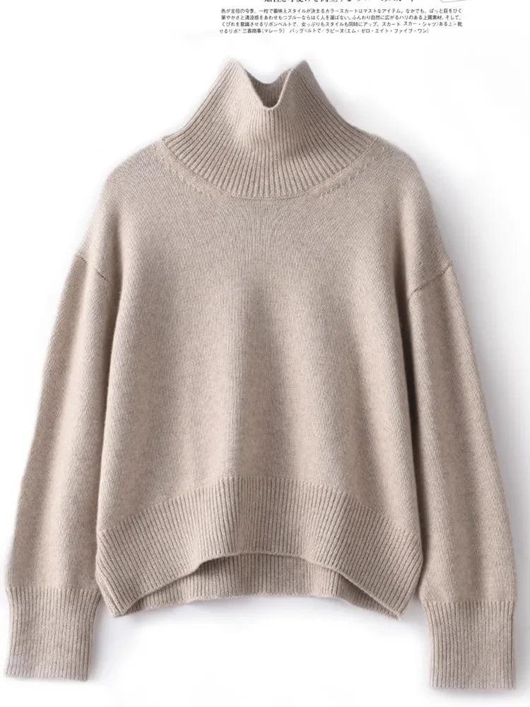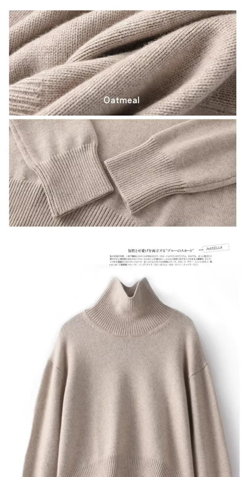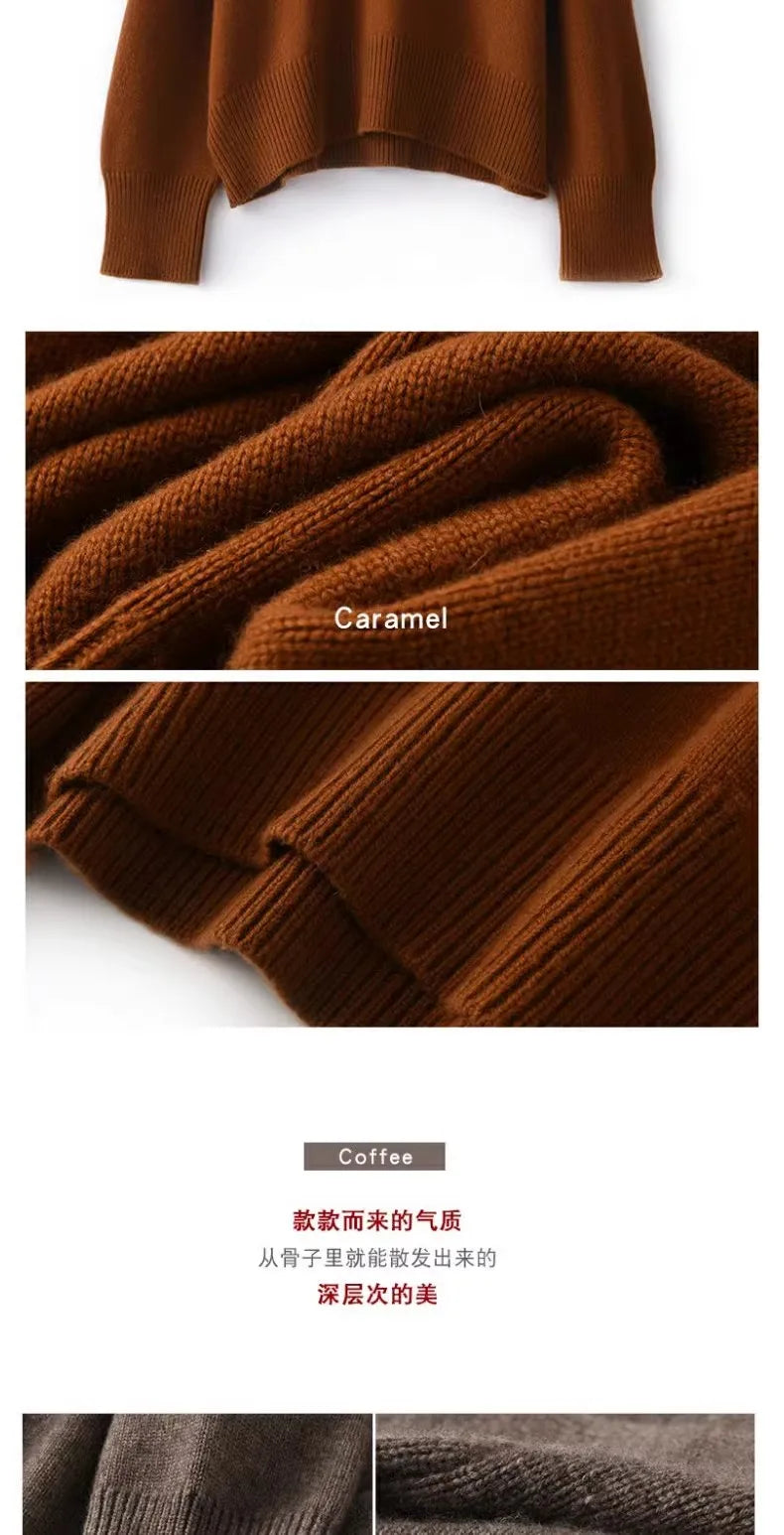 Otoño e Invierno nuevo 100% suéter de cachemira pura suéter de cuello alto grueso para mujer suéter de punto suelto