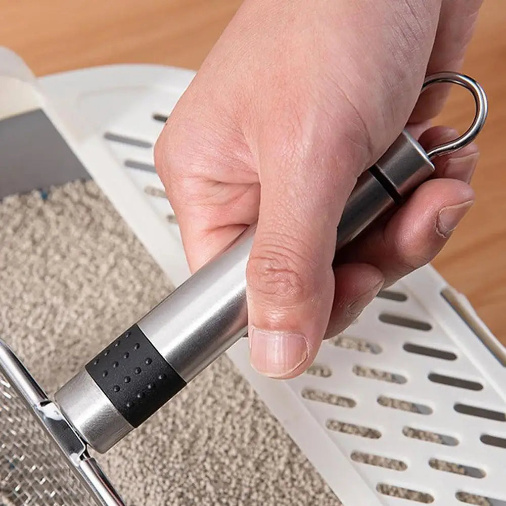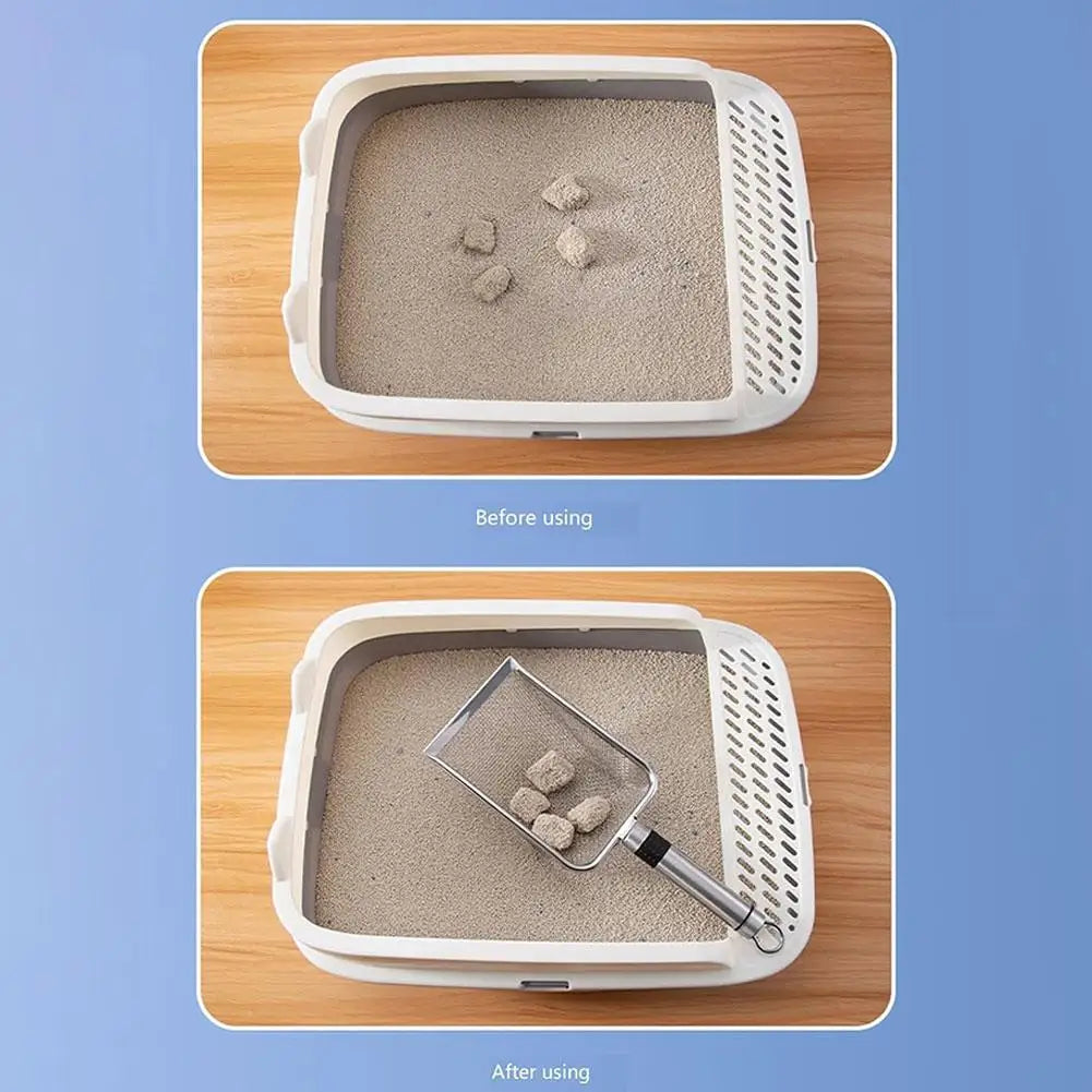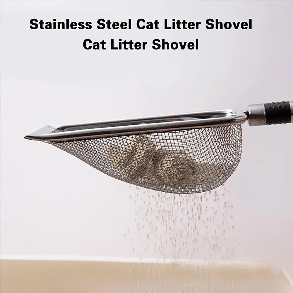 Pala de arena de acero para gatos, pala para excrementos de mascotas de poros finos para conejos, perros, herramientas de limpieza de inodoro, suministros para mascotas