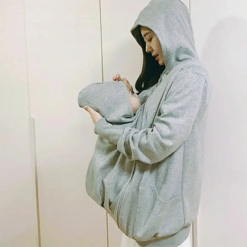 Ropa de maternidad portabebés sudaderas con capucha chaqueta abrigos Otoño Invierno prendas de vestir exteriores de lana mamá canguro abrigos con capucha ropa de embarazo