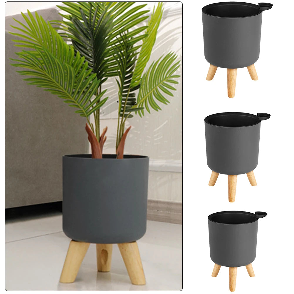 Sistema de drenaje de autorriego para plantas con patas de madera, maceta redonda de pie para pies, hierbas, bonsái para guardería, Moderno