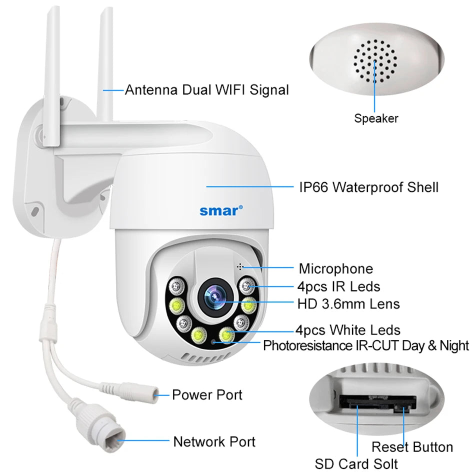 Smar 8CH NVR 5MP Kit de cámara inalámbrica Ai Humman detectar al aire libre 3MP PTZ WiFi visión nocturna CCTV sistema de vigilancia de seguridad ICsee