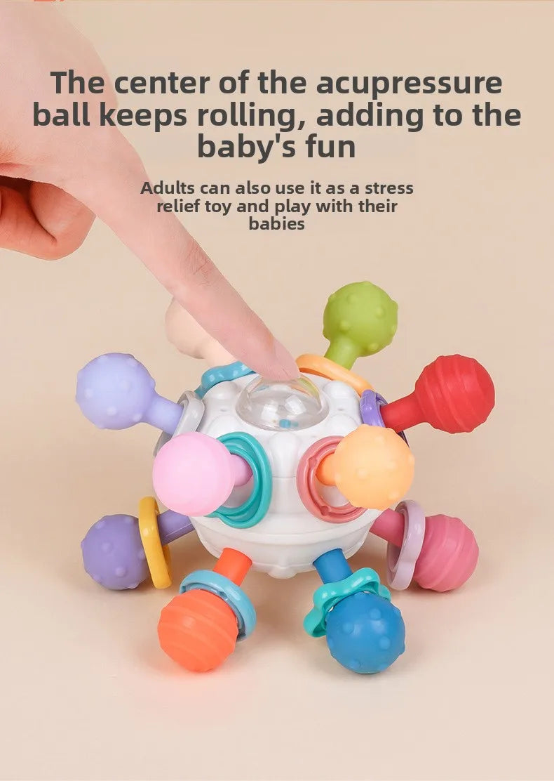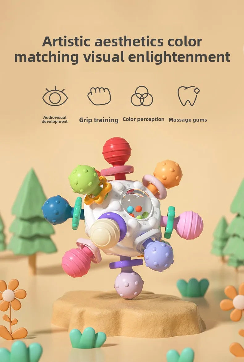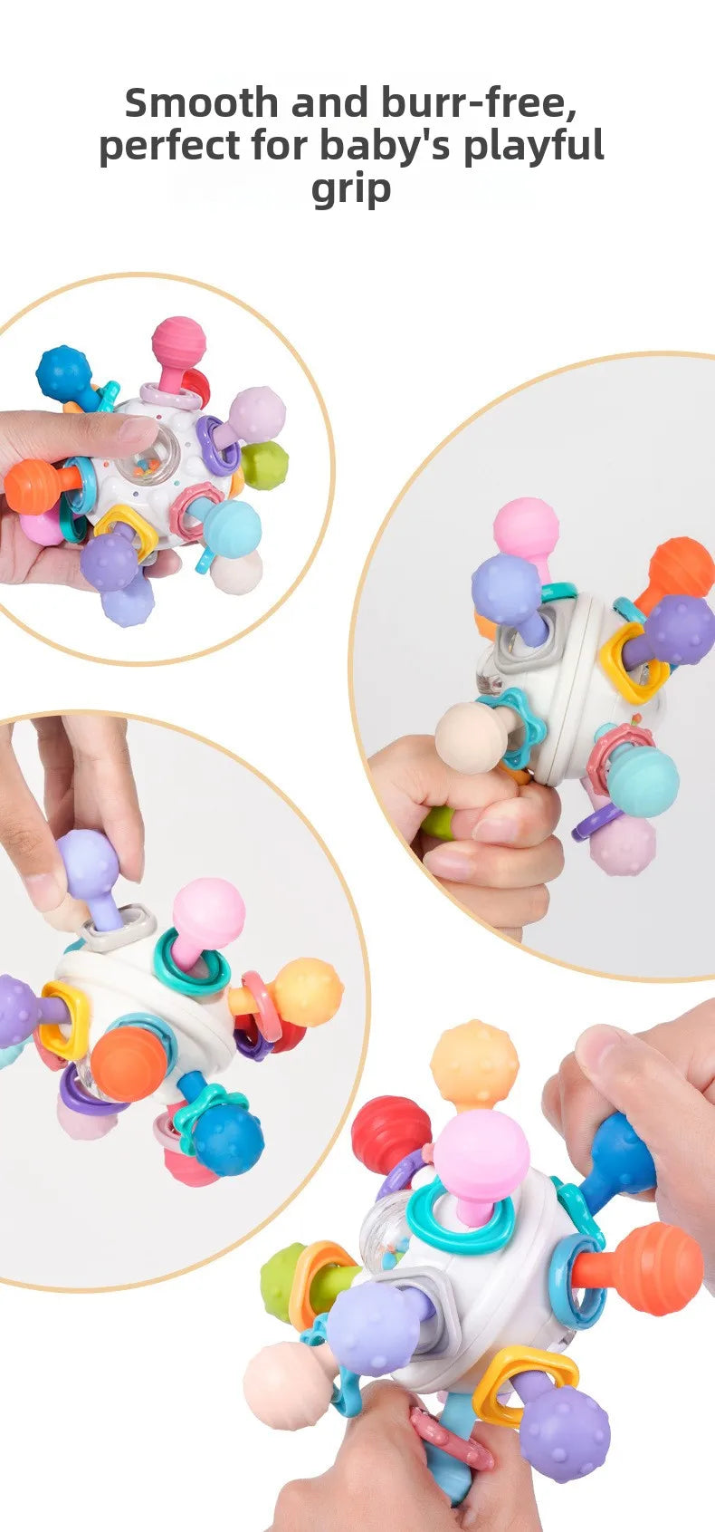 Sonajero de bola de dedo de Manhattan infantil, bola de átomo, mordedor giratorio, juguete de dentición, bola de Gel suave