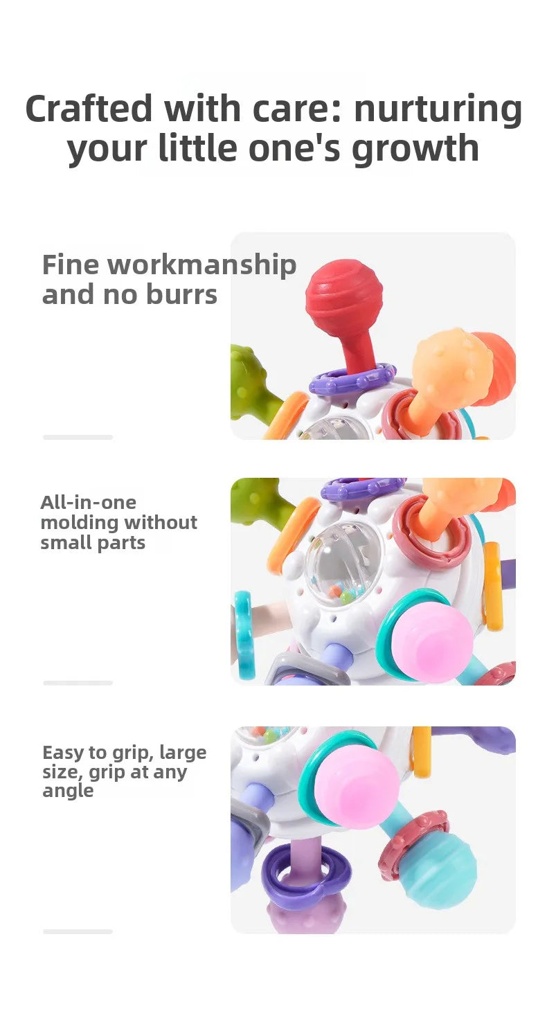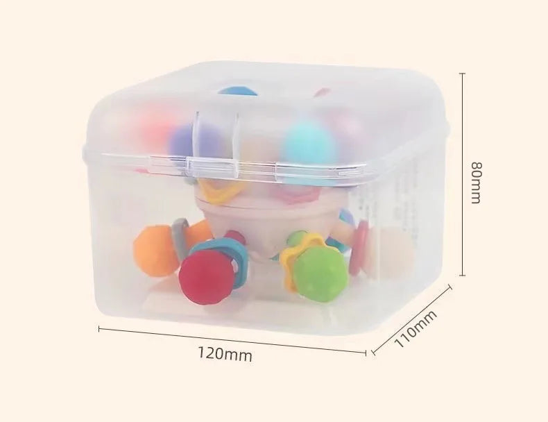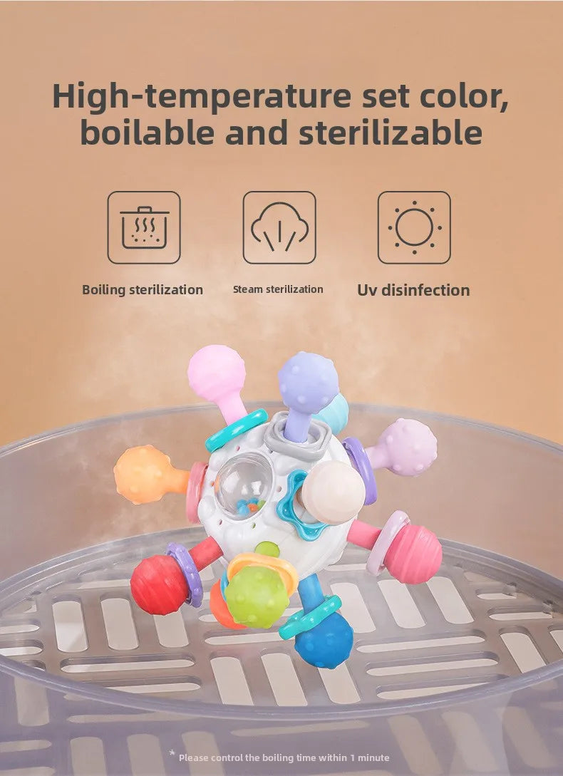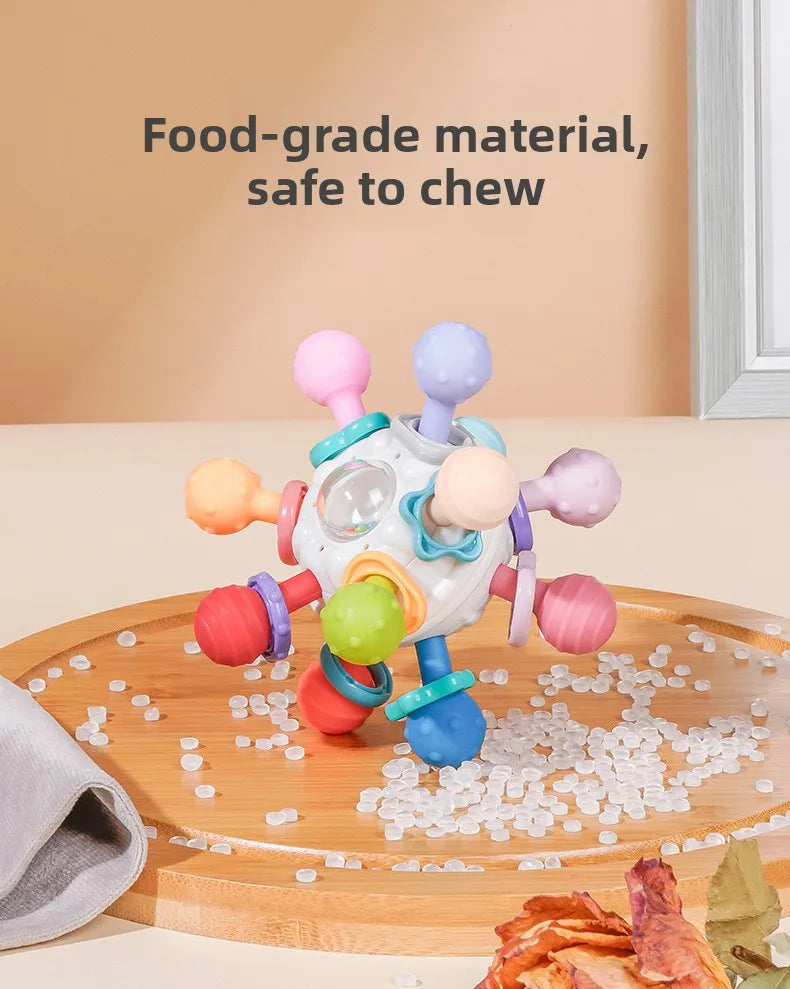 Sonajero de bola de dedo de Manhattan infantil, bola de átomo, mordedor giratorio, juguete de dentición, bola de Gel suave
