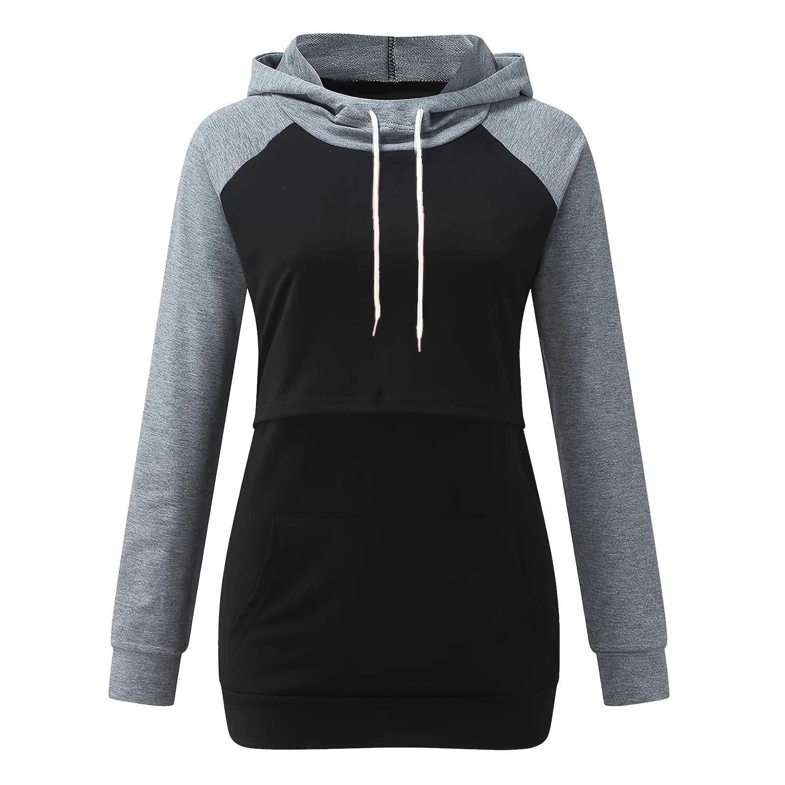 Sudadera con capucha de maternidad para mujer, sudaderas con capucha de manga larga para amamantar, Top de embarazo, ropa con bolsillo de canguro