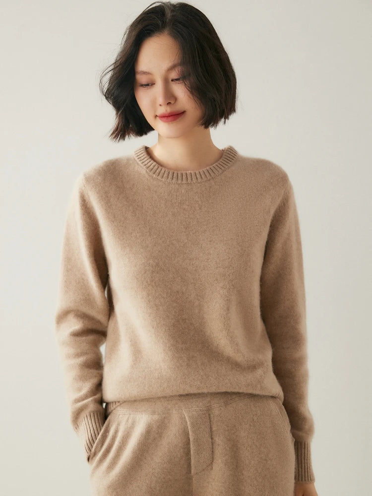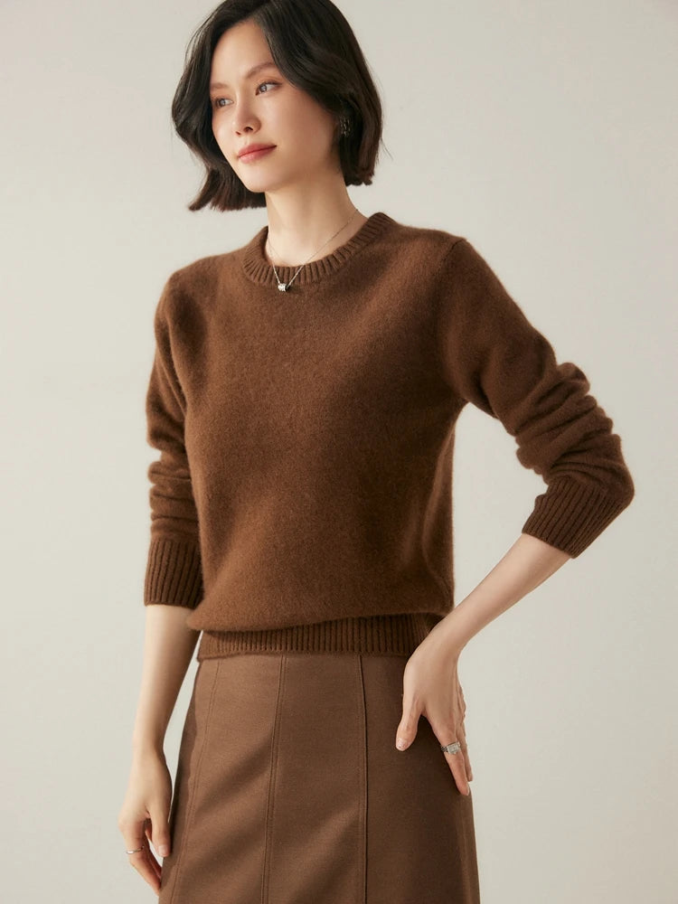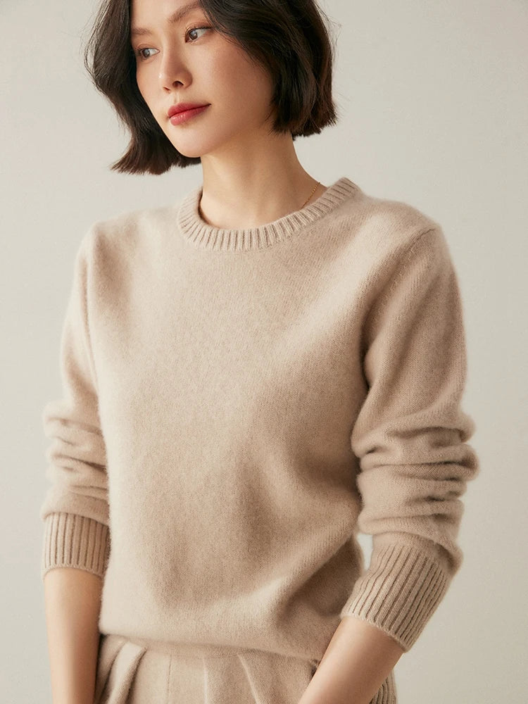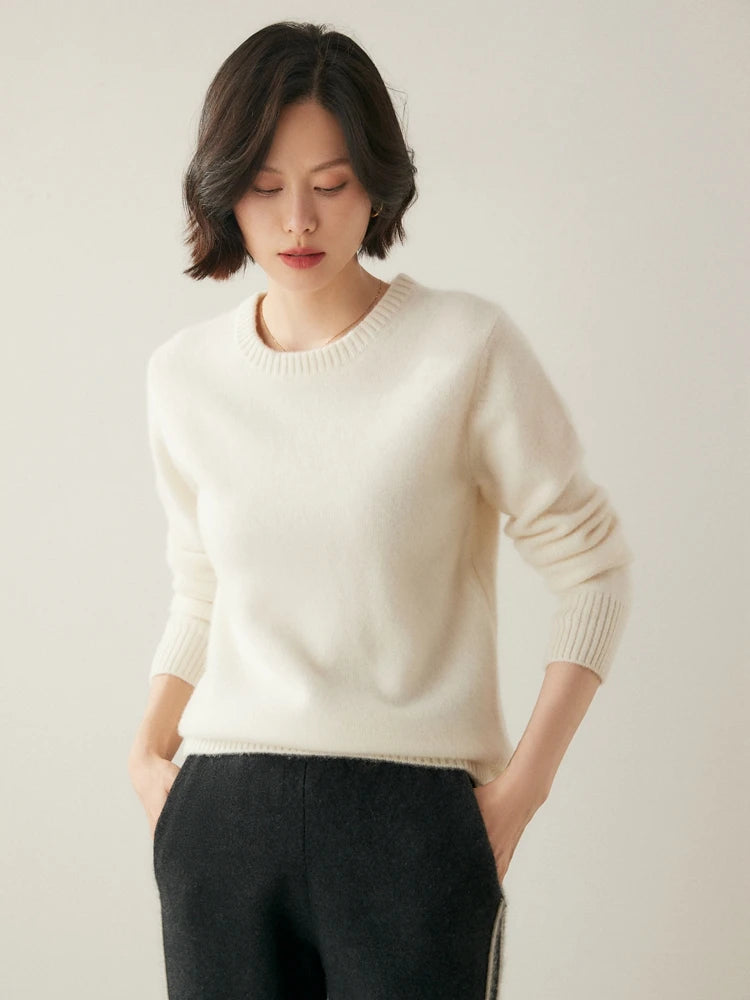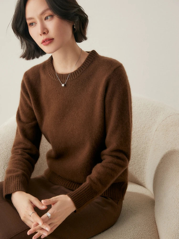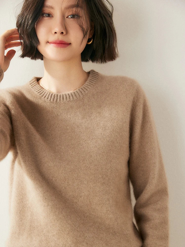 Suéter elegante de Cachemira de 100% con cuello redondo para mujer, jersey de Color sólido, ropa informal básica de otoño e invierno, prendas de punto gruesas y cálidas, Tops suaves