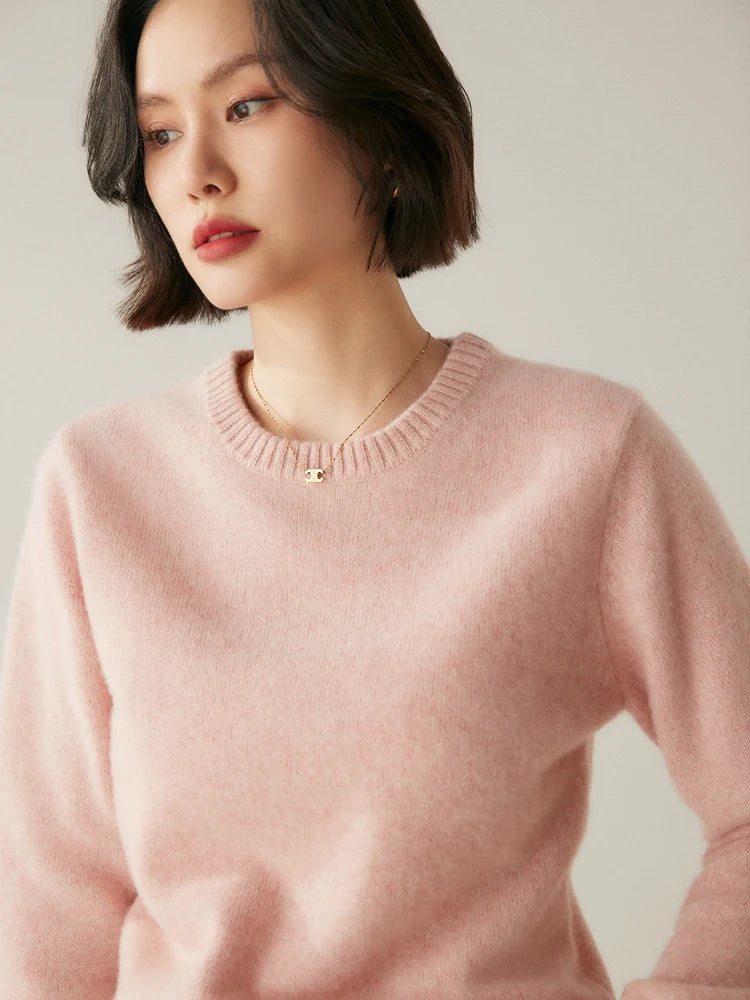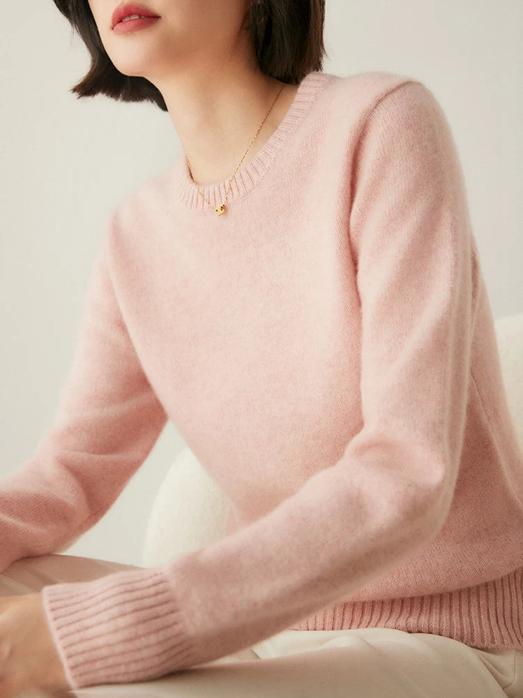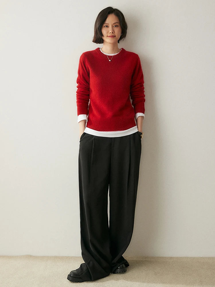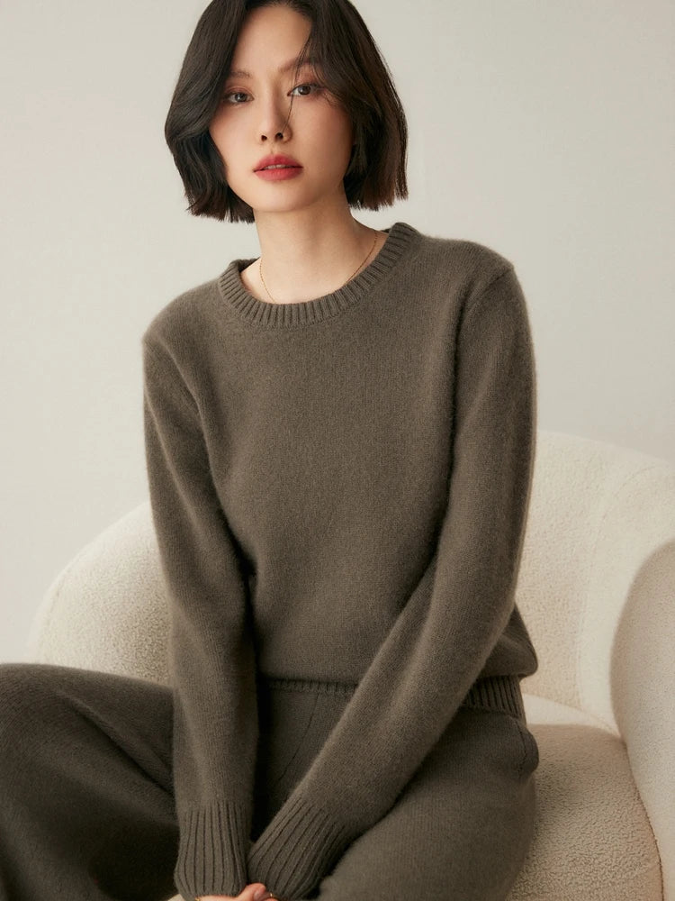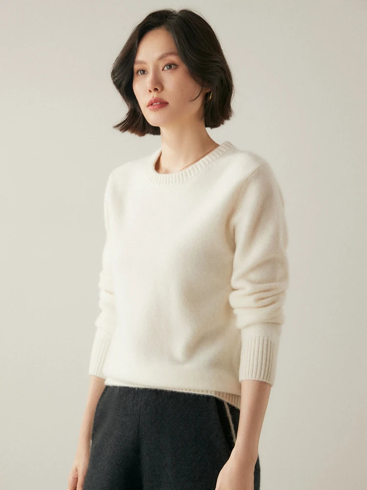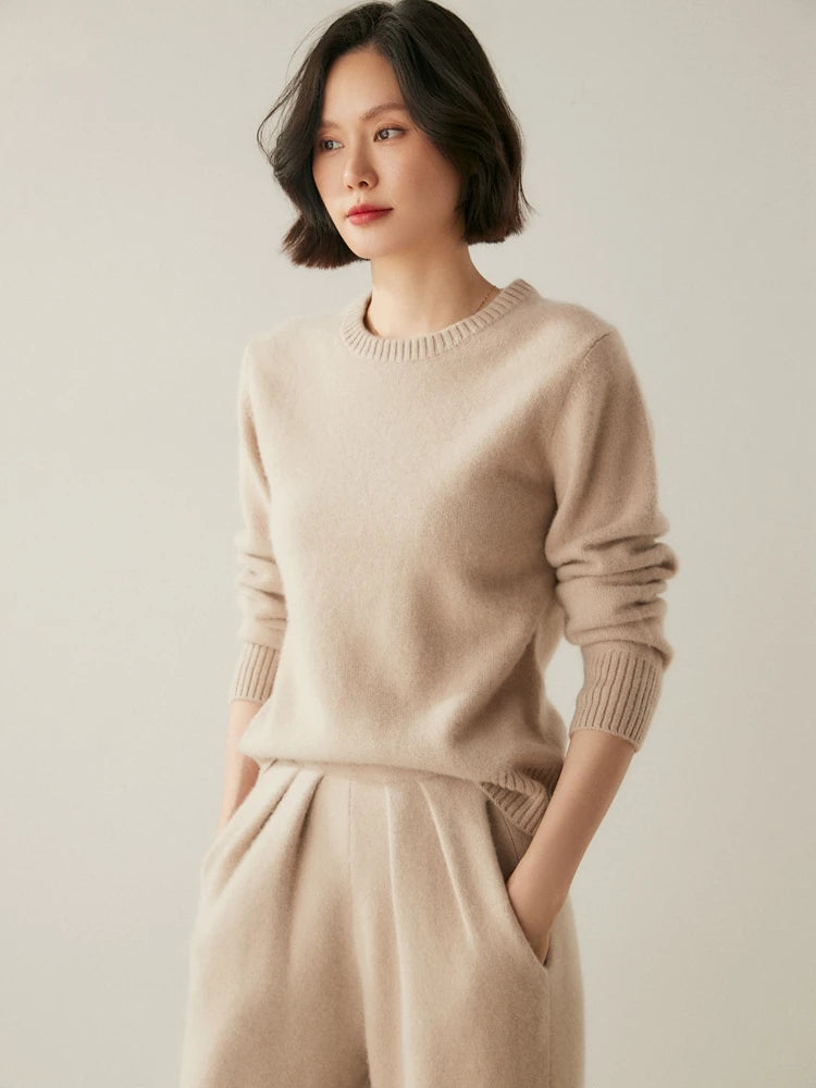 Suéter elegante de Cachemira de 100% con cuello redondo para mujer, jersey de Color sólido, ropa informal básica de otoño e invierno, prendas de punto gruesas y cálidas, Tops suaves