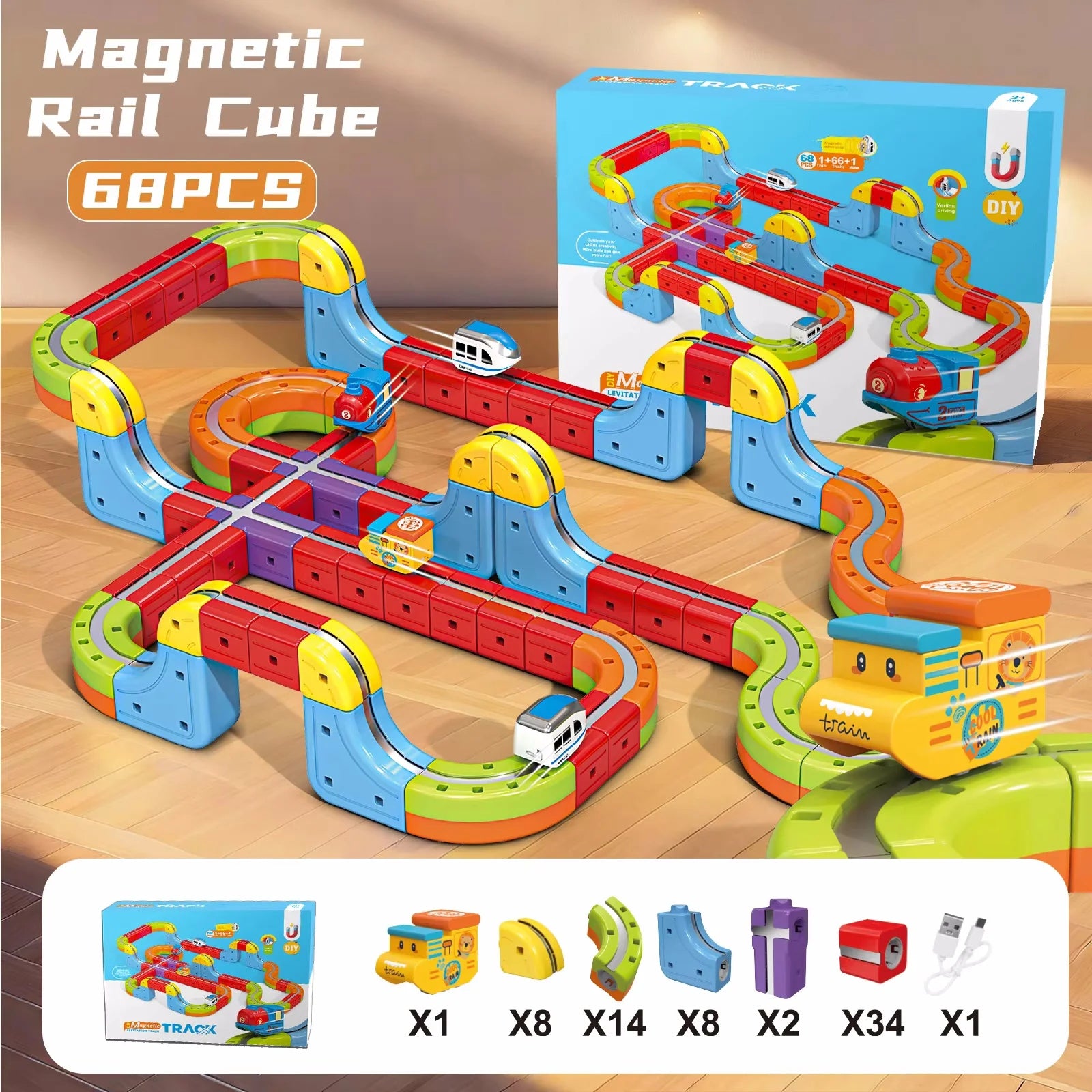 Tren electrónico mágico, cubo de juguete para niños, montaje artesanal, vía férrea, juego de bloques de construcción de automóviles, juguete educativo, regalos de navidad