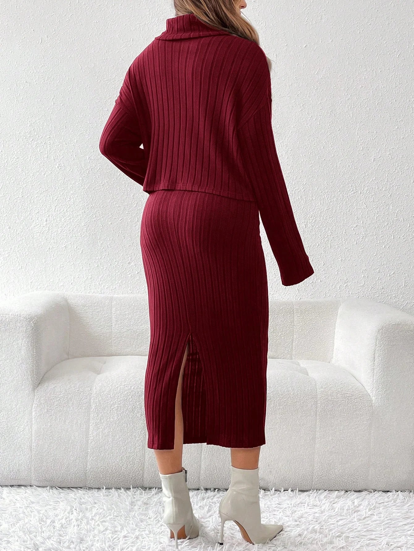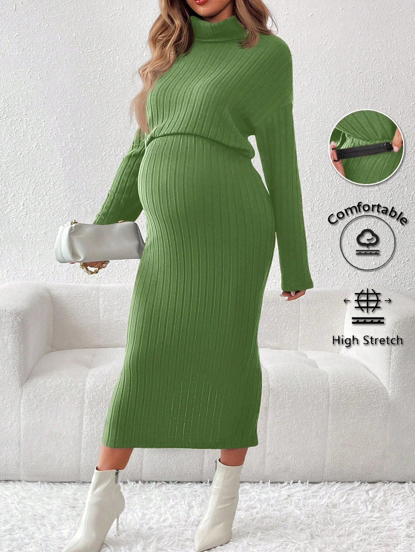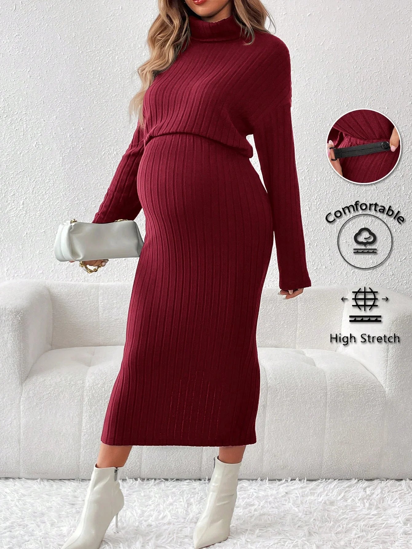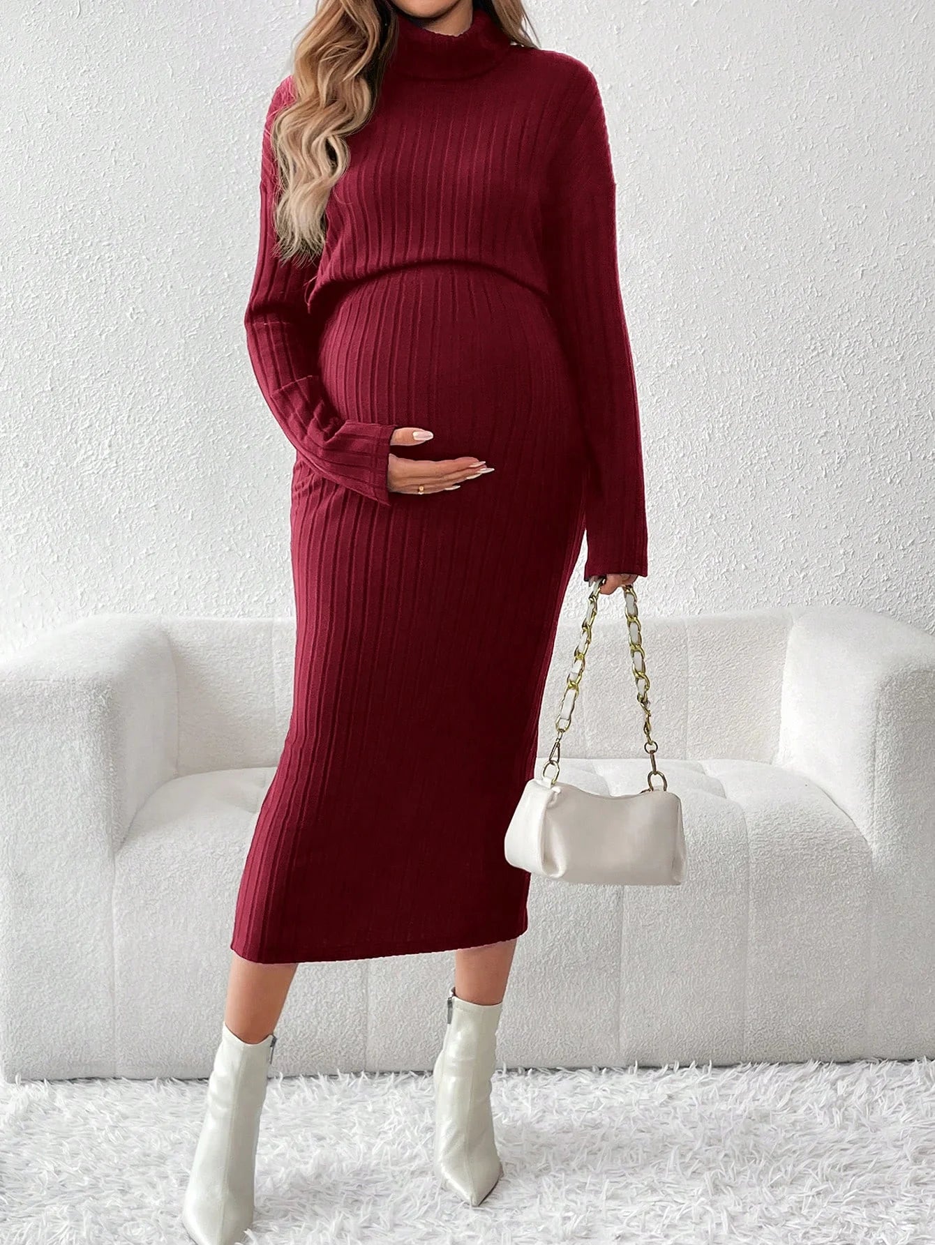Un conjunto de dos piezas de suéter de cuello redondo de punto de color sólido y cintura alta para mujeres embarazadas