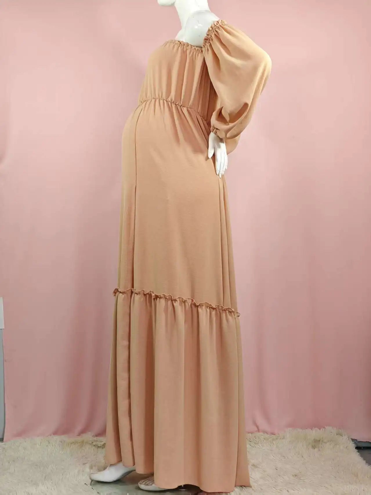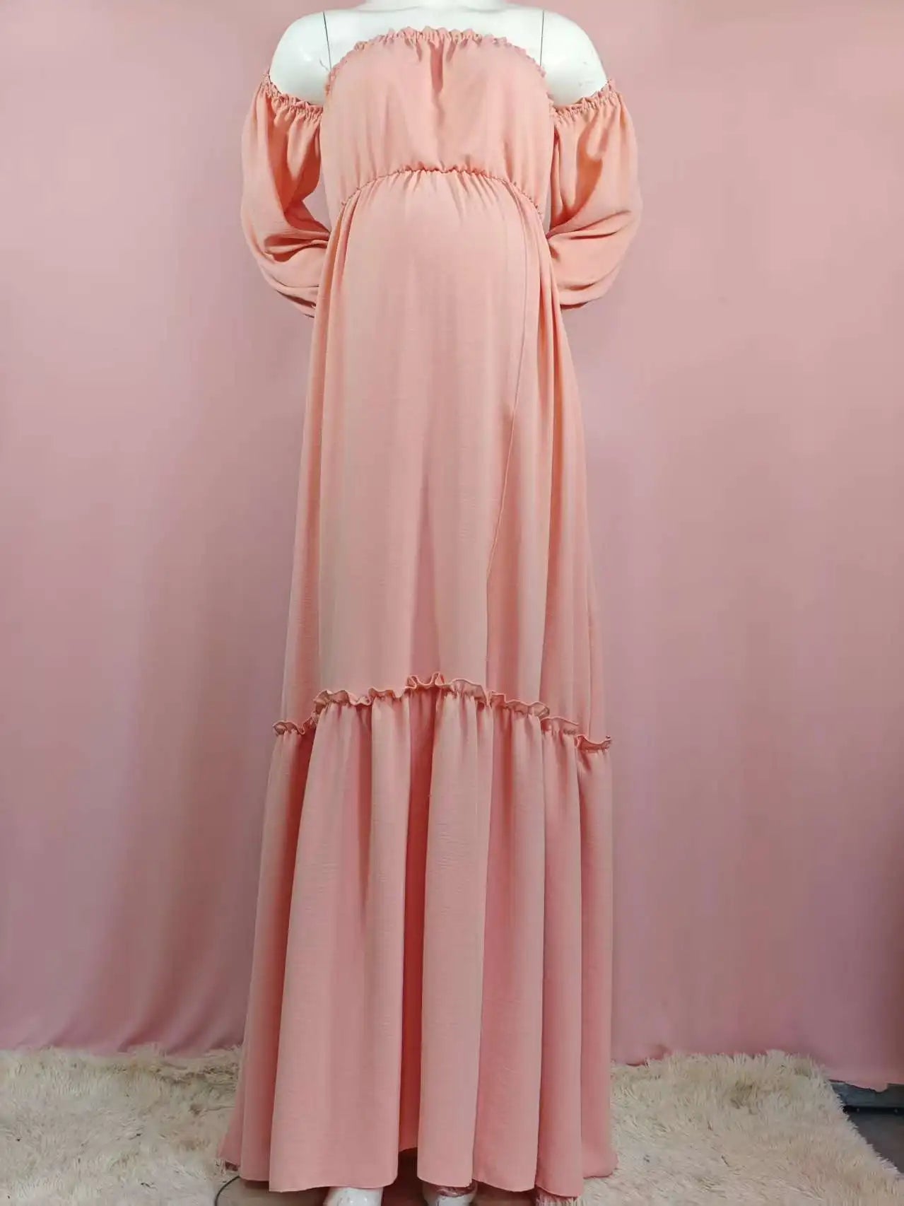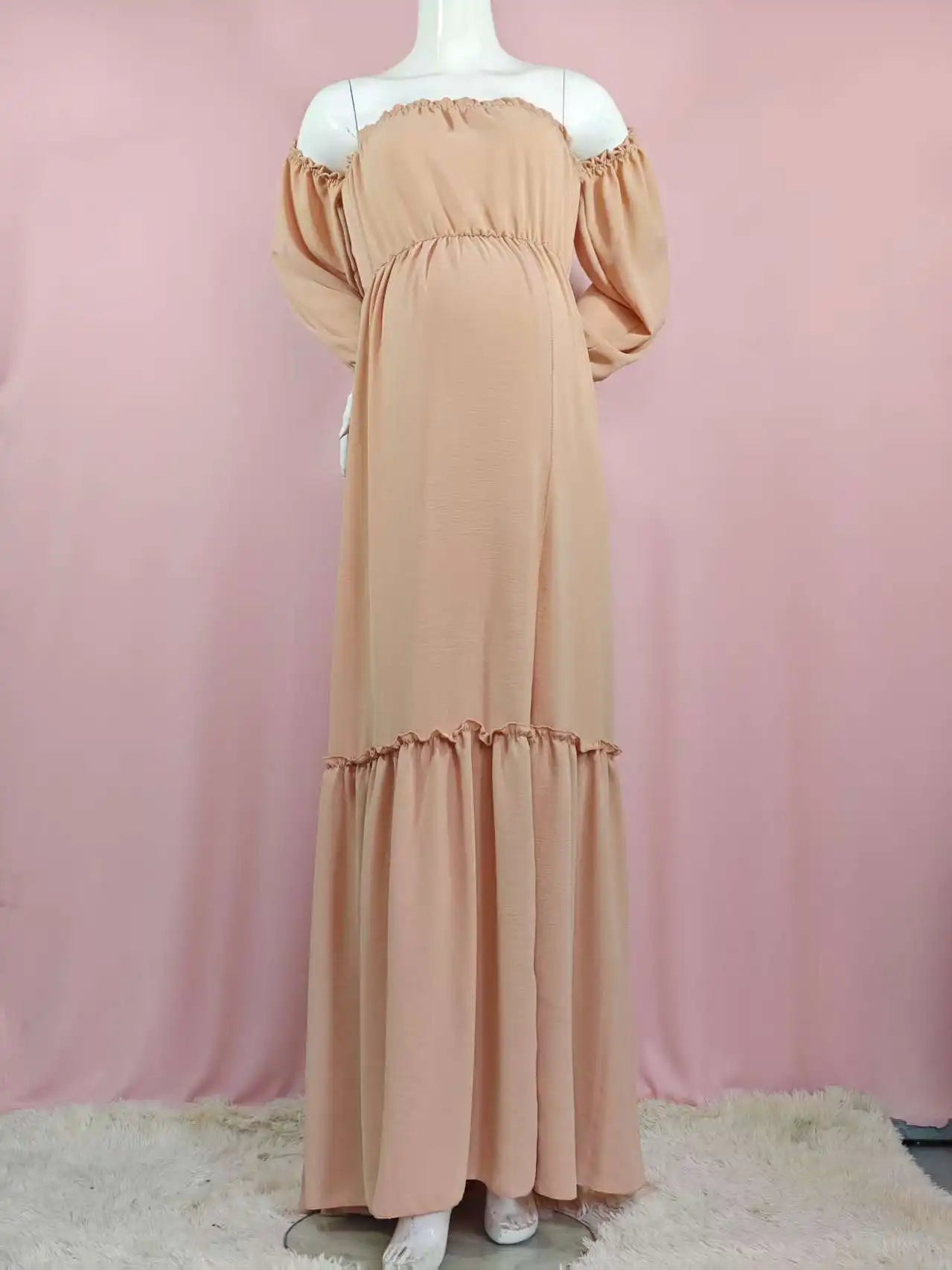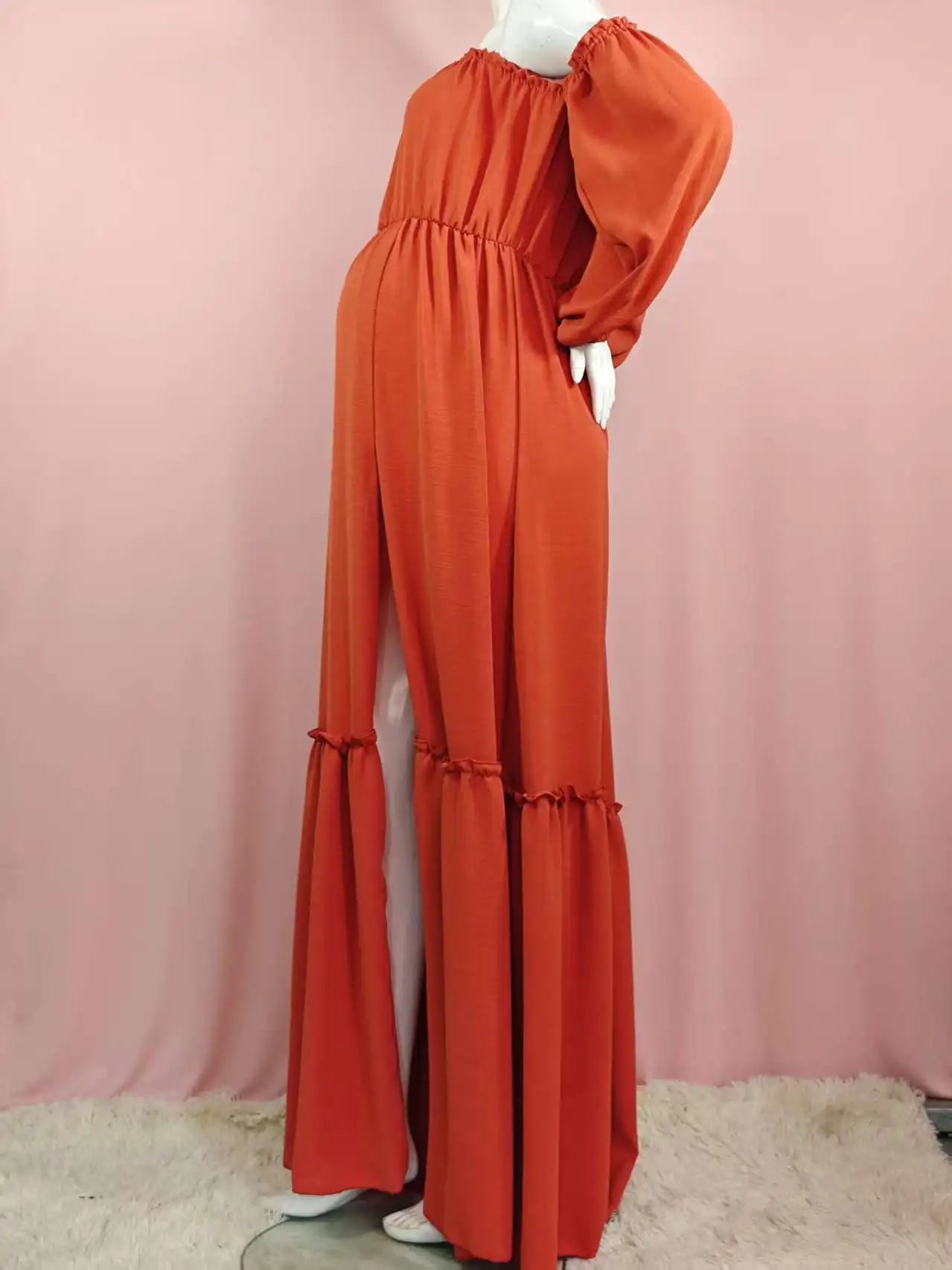 Vestido de sesión de fotos de maternidad: vestido sexy con hombros descubiertos, mangas abullonadas juguetonas y ropa con abertura para piernas para fotografía de mujeres embarazadas