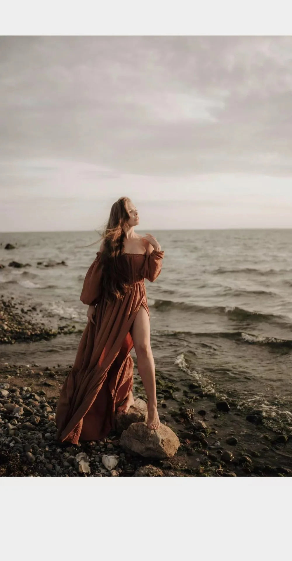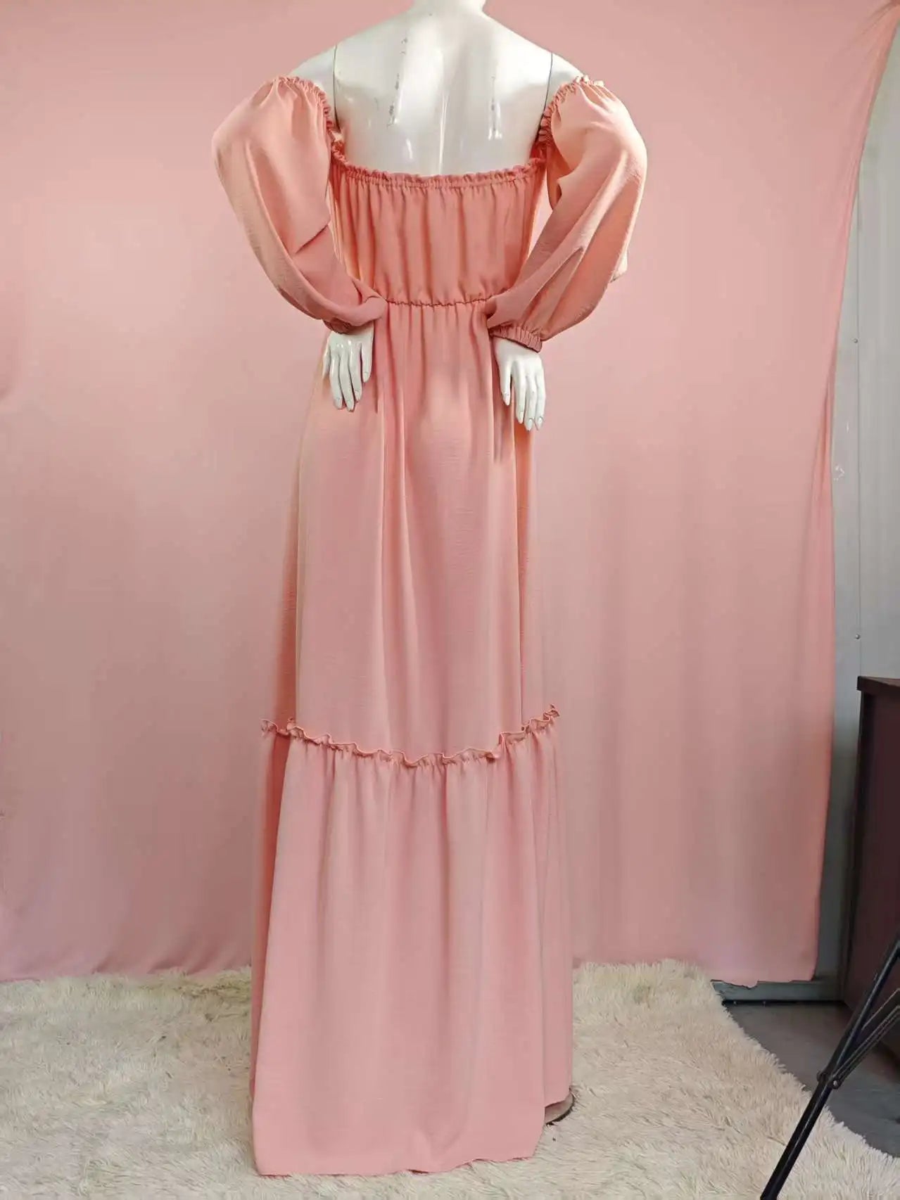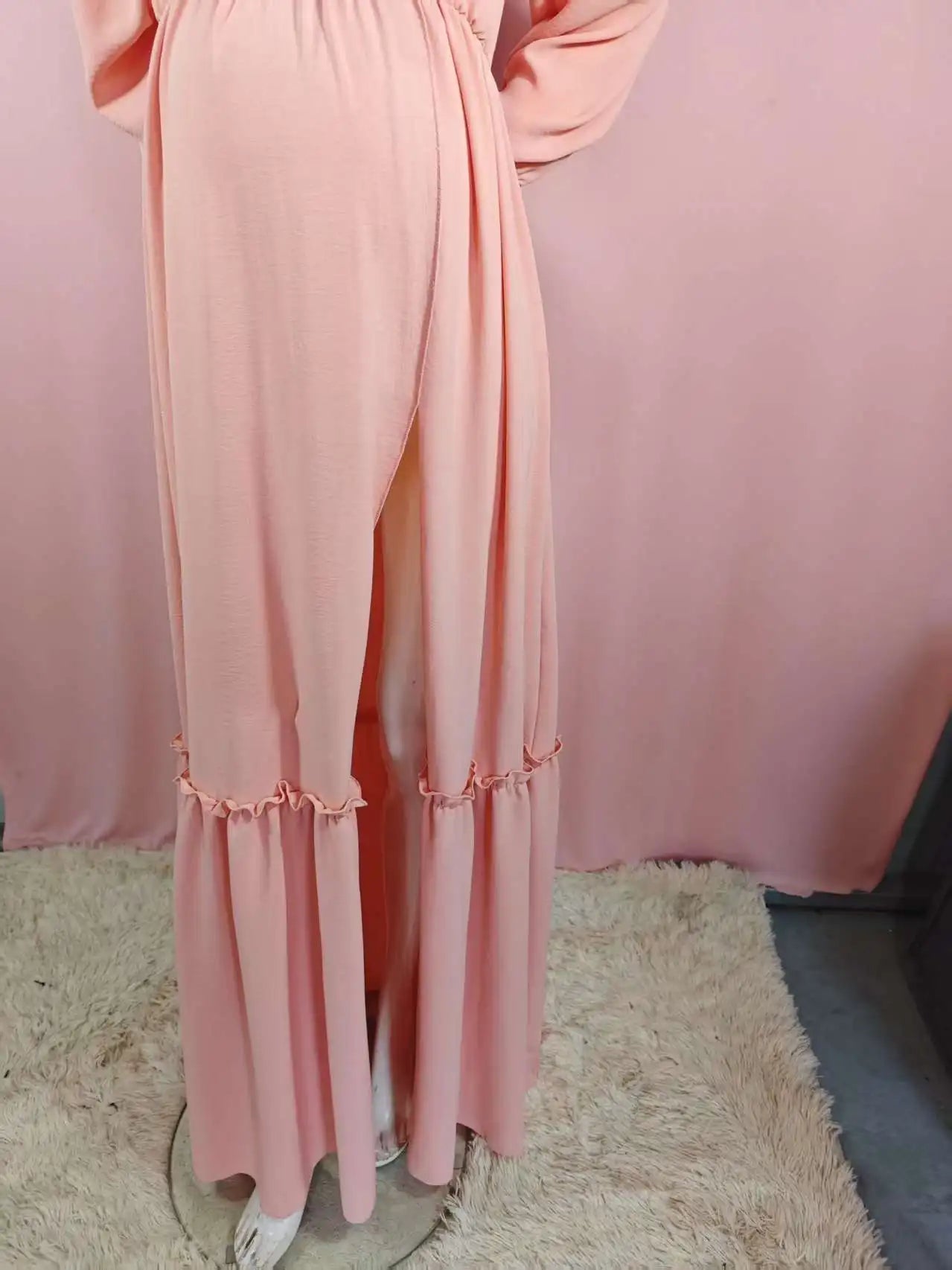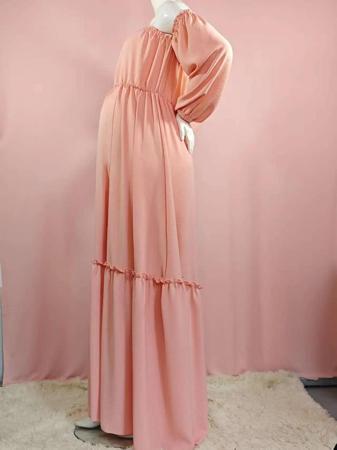 Vestido de sesión de fotos de maternidad: vestido sexy con hombros descubiertos, mangas abullonadas juguetonas y ropa con abertura para piernas para fotografía de mujeres embarazadas
