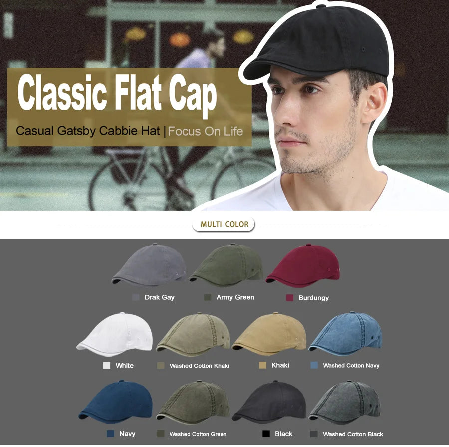 VOBOOM Sombrero plano para hombres Gorra clásica para vendedor de periódicos Gorras de golf Sarga de algodón Sombreros clásicos de hiedra Cabbies Headpiece Boina casual Blanco